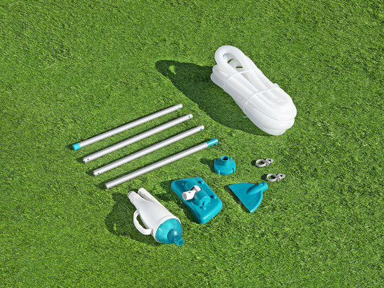 Набір для чистки басейну Bestway AquaCrawl 58212 - це простий і легкий у використанні набір для чищення басейнів. Просто підключіть його до фільтруючого насоса за допомогою одного з адаптерів, що входять у комплект, і починайте очищення. Пилосос з легкістю очистить дно і стінки басейну, а також поверхню води від плаваючих комах, листя та іншого бруду, а головне заощадить вам масу часу, зробивши воду кристально чистою. Набір для чищення Bestway® забезпечить необхідний догляд за вашим басейном, щоб ви та ваші діти могли безпечно розслабитися та охолодитися у спекотні дні.