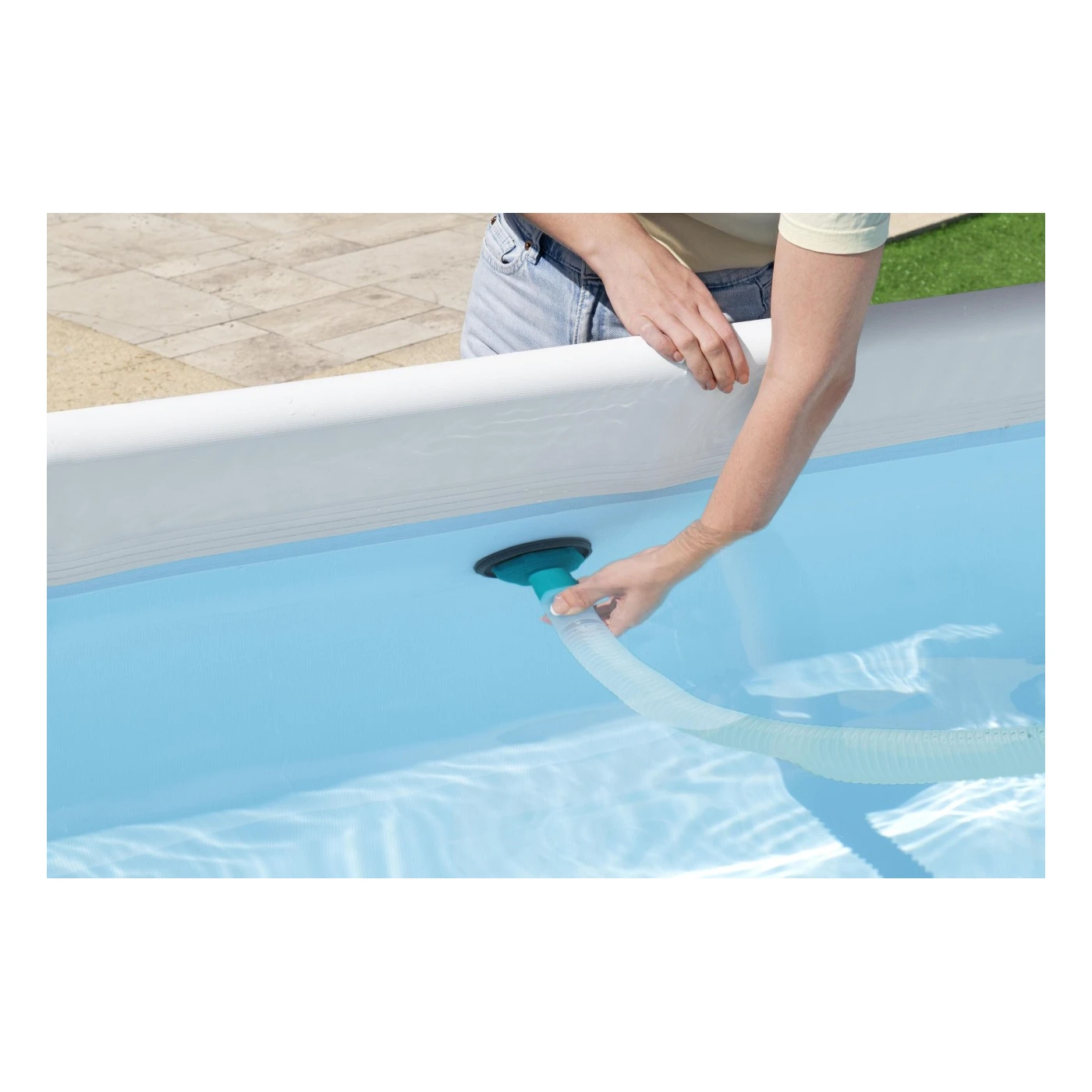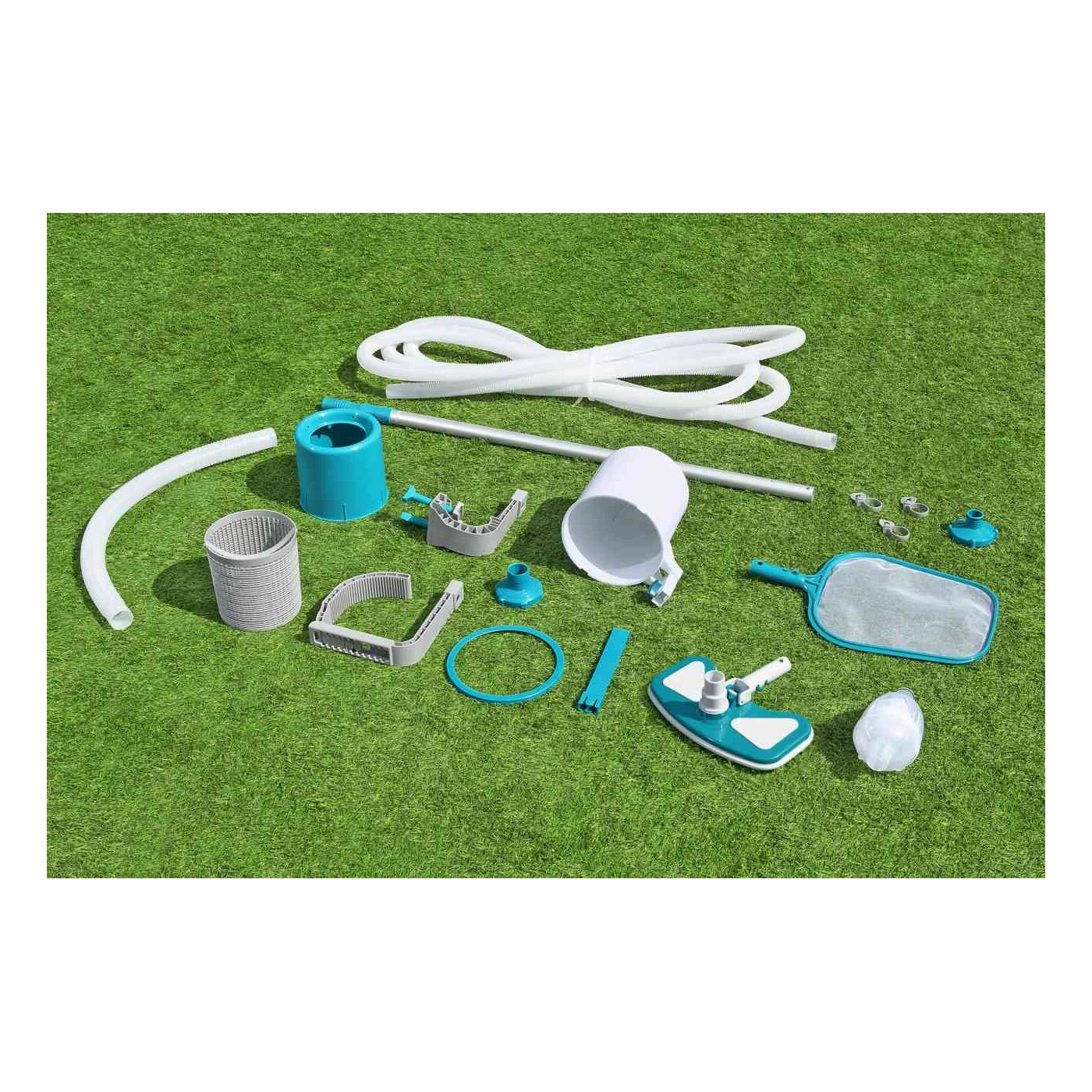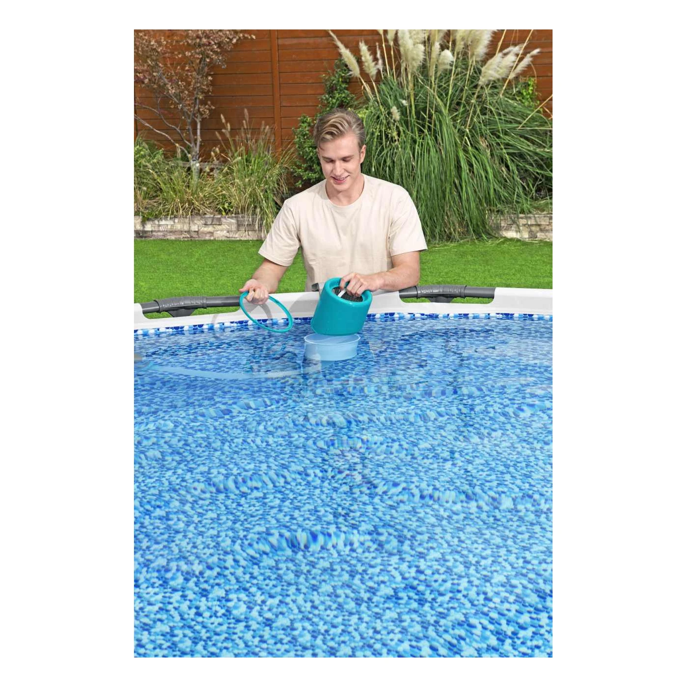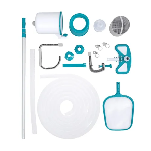 Набір для догляду за басейном Bestway 3в1 58237 - призначений для очищення наземних басейнів Bestway. Завдяки регульованій алюмінієвій штанзі довжиною приблизно 2,79 м, її можна використовувати для басейнів більшого діаметра, навіть до 6,10 метрів. Комплект включає пилосос для басейну, скімер та ручний фільтр з сіткою. Пилосос має знімний контейнер для листя та сміття, який можна використовувати багаторазово. Садовий шланг, що входить до комплекту, має довжину приблизно... 7,5 м завдовжки та приблизно 3,2 см у діаметрі, тому дозволяє очищати стінки та дно басейну. Пилосос можна підключити до фільтрувальних насосів з продуктивністю понад 2006 л/год. Набір багатофункціональний, його можна використовувати як скімер, пилосос або для ручного збору плаваючого бруду.