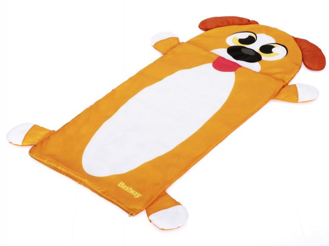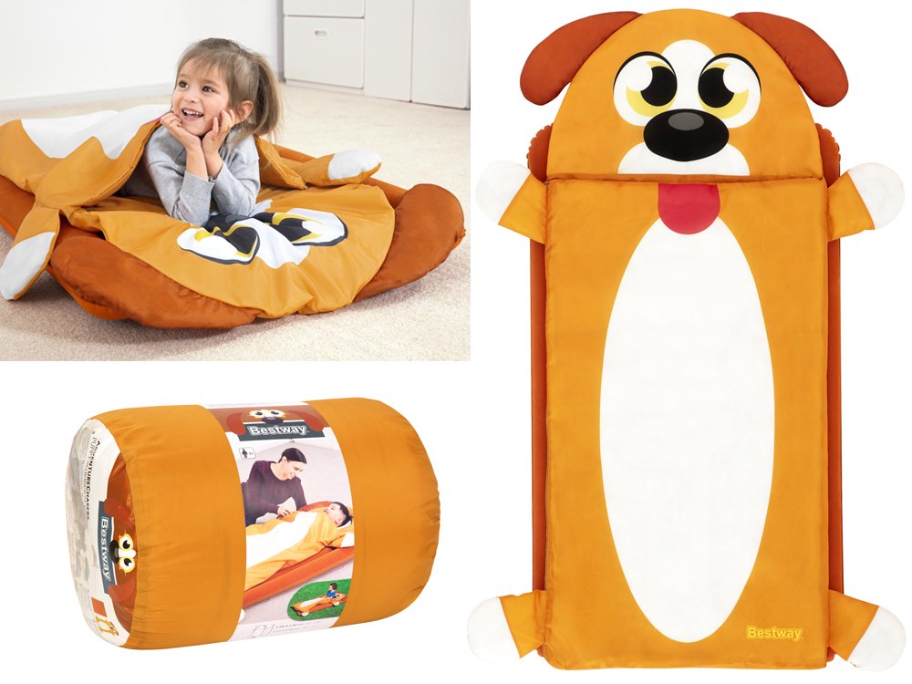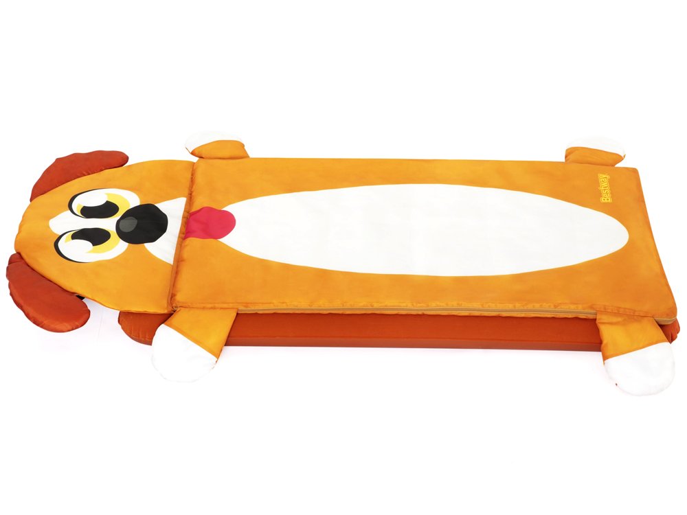 Надувний матрац+спальний мішок Bestway Собака 132x76x10cm 68109 - Надувний велюровий матрац розміром 132 x 76 x 10 см ідеально підходить для використання в приміщенні та на вулиці, наприклад, під наметом. До м'якого ліжечка підійде спальний мішок 158 x 66 см, який укриє дитину під час сну чи сну.