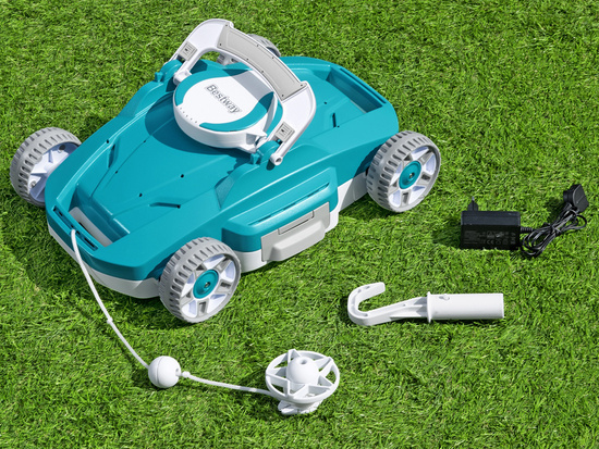 Пилосос для басейну Bestway AquaTronix G200 58765 - це сучасне і зручне рішення для власників басейнів, які хочуть насолоджуватися чистою водою без необхідності ручного очищення. Завдяки своїй самохідній конструкції пилосос самостійно рухається по дну басейну, ефективно збираючи бруд, такий як пісок, листя та дрібні відкладення. Це ідеальний варіант для людей, які цінують комфорт і економію часу. Завдяки вбудованому акумулятору AquaTronix G200 не потребує підключення до будь-яких кабелів або шлангів, що істотно спрощує його використання. Після повної зарядки він може працювати до 90 хвилин , ефективно очищаючи басейн від усіх забруднень.