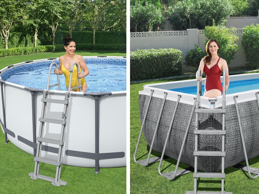 Сходи для басейну 122 см Bestway - Завдяки тому, що сходи двосторонні, вона забезпечує зручність входу і виходу з резервуара. Все це легко зібрати. Сходи підходить для розширювальних та стелажних басейнів. Максимальні розміри стінки басейну - 122 см заввишки і 30 см завширшки.