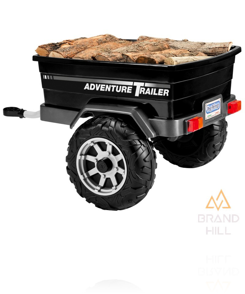 Причіп Peg-Perego Adventure Trailer - допоможе дітям перевозити іграшки або інші вантажі. Посилений корпус причепа дозволяє перевозити до 30 кг вантажу. Колеса з візерунковим протектором долають будь-який підйом і тип місцевості, а гачок, що буксирує, виготовлений з антикорозійного лакованого заліза. Позаду розташований номерний знак і сигнальні вогні, що відбивають світло. Cтінки виготовлені з особливо міцного пластику, стійкого до механічних пошкоджень.