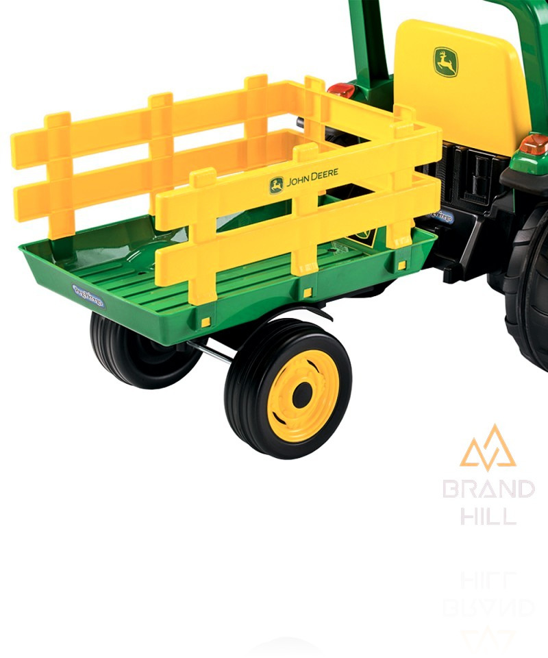 Причіп Peg-Perego John Deere Stake-Side Trailer - допоможе дітям перевозити іграшки або інші вантажі. Cтінки виготовлені із міцного пластику, стійкого до механічних пошкоджень.