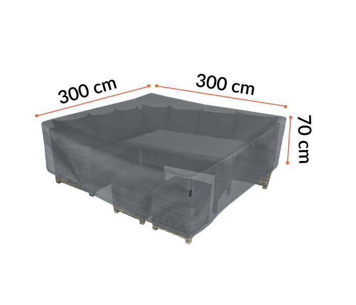 Чохол на садові меблі 300x300x70 см - захистіть свої садові меблі від несприятливих погодних умов за допомогою покриття Focus Garden. Повітропроникна, виготовлена з водонепроникної тканини, ефективно запобігає утворенню цвілі, забезпечуючи тривалий захист садових меблів. Крім того, чохол виготовлений з пофарбованої в розчин тканини, що робить його винятково стійким до вицвітання під впливом сонячних променів. Завдяки надзвичайній міцності та легкості тканини чохол забезпечує чудовий захист за будь-яких погодних умов. Коли він не потрібен, його можна легко зберігати в зручній сумці - завжди готовий до використання.Шнурок зі стопорами забезпечує щільне прилягання та максимальний захист
