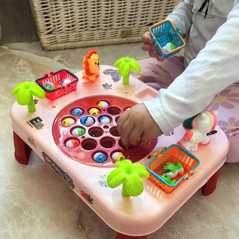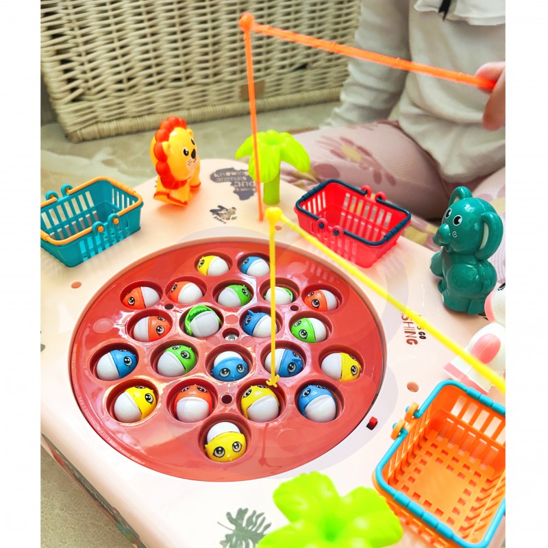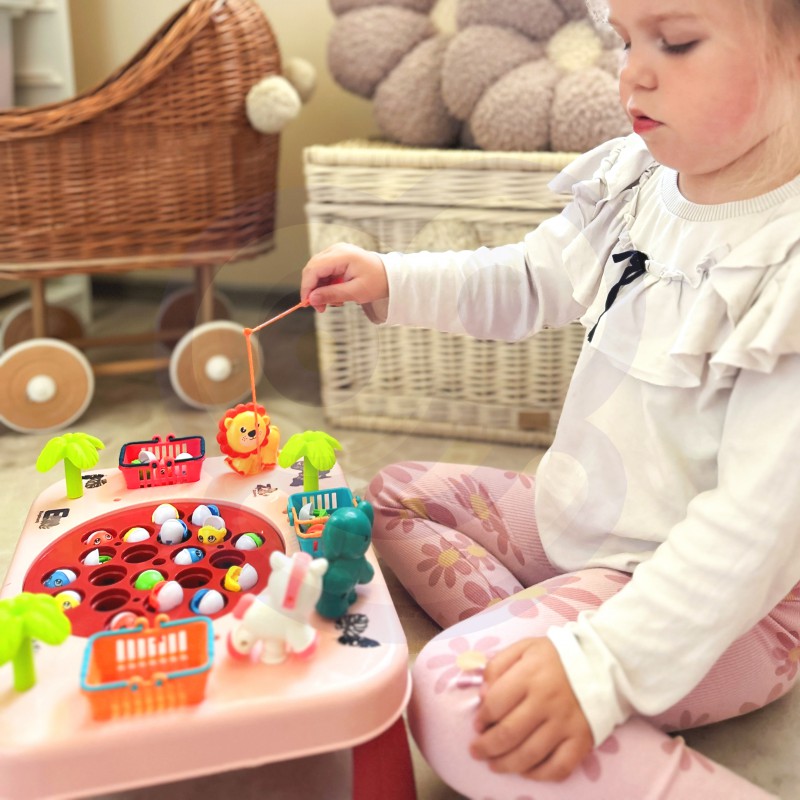 Інтерактивна аркадна гра Риболовля WOOPIE Рожевий стіл 50766 - чудова ідея для сімейного відпочинку! Цей унікальний стіл є воротами до нескінченних розваг для всієї родини та друзів. Виготовлений з міцного матеріалу, він не тільки довговічний, але й естетичний. Його барвистий дизайн привертає увагу та спонукає до спільної гри. Розставлені з боків столу кошики - це не тільки практичне доповнення, але й елемент змагання. Зберіть якомога більше риби, кидайте її в кошики і готуйтеся підраховувати бали в кінці гри. З боків столу також є милі тварини, які милують око. Щоб ускладнити риболовлю, дошка з рибою на ній рухається. Щоб розвага була ще приємнішою, стіл видає мелодію та звукові ефекти!