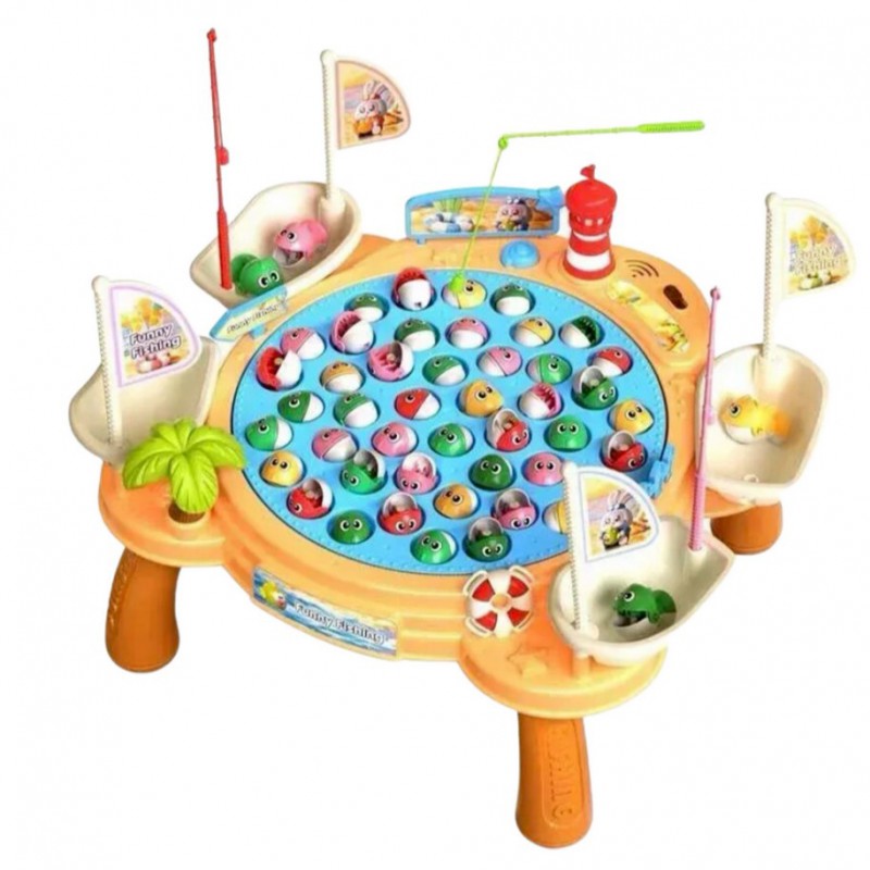 Інтерактивний стіл піратська Рибалка WOOPIE 52371 - це ігровий столик, який переносить дітей у захоплюючий світ риболовлі, який вчить дитину терпінню, концентрації та спритності. Цей інтерактивний стіл пропонує можливість порибалити на магнітні вудки, а також пропонує додатковий атракціон у вигляді обертової основи з рибою. Під час гри звучить музика, що робить задоволення ще веселішим! Стіл обладнаний місцями для чотирьох гравців, персональною вудкою та піратським кораблем, щоб прибрати спійману рибу. Перемагає той, хто набере їх найбільше.