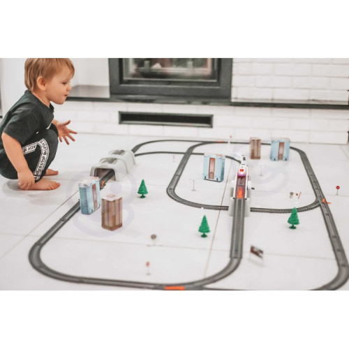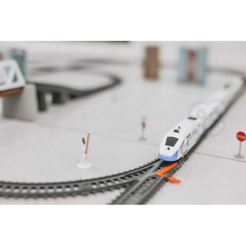 - в набір входить: поїзд Pendolino - 5 шт., пересувний, підйомний міст, залізничний тунель, знаки, макети житлових будинків, шлагбауми, дерева, ліхтарі.