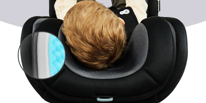 - Завдяки тому, що підголівник використовує систему H-Guard, він міцний і надійний. Цілих три шари, в тому числі один з піною з ефектом пам'яті, дуже добре поглинають енергію, що утворюється при зіткненні. Голова вашої дитини в безпеці.