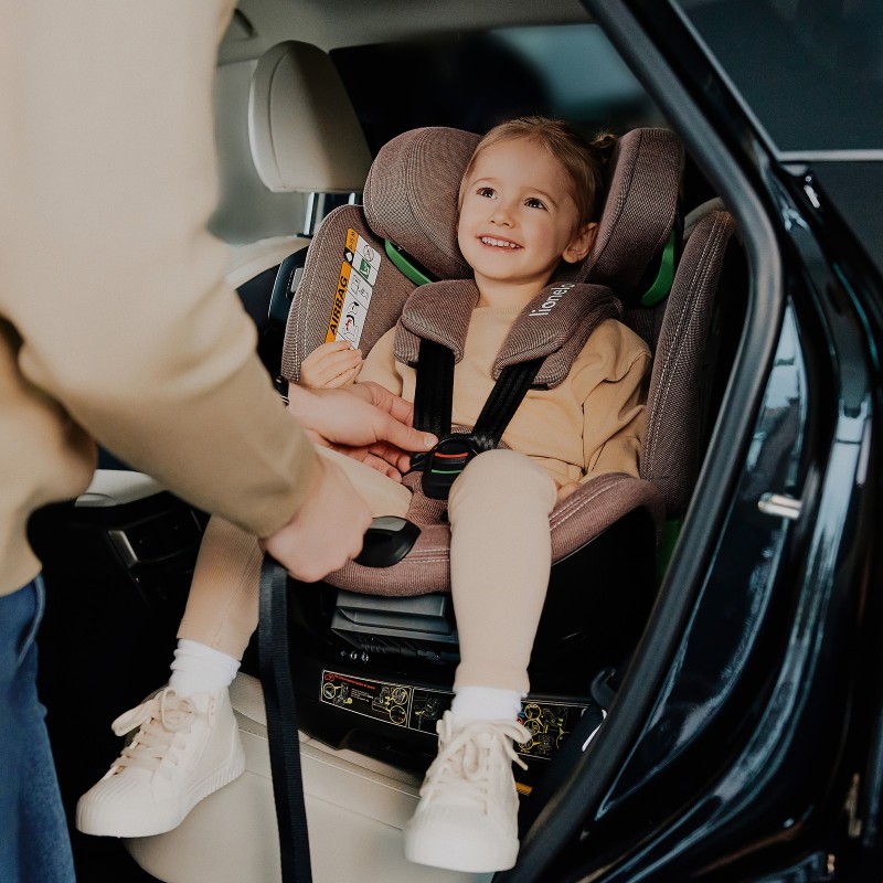 - Harmony i-Size дозволяє безпечно перевозити дитину (зростом до 105 см) у положенні спиною вперед, що вважається найбезпечнішим способом встановлення сидіння.