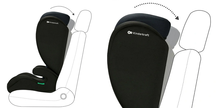 - Підголівник автокрісла Kinderkraft i-Spark можна подовжити, змінюючи його висоту на 10 градусів.