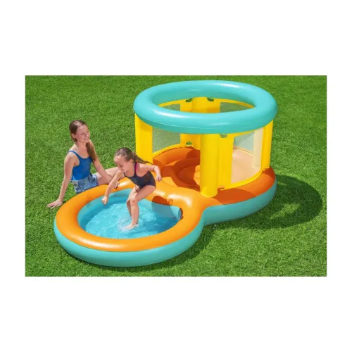 Надувний ігровий комплекс Bestway 2в1 для дітей 239x142x102 52385 - – ідеальне місце, щоб охолонути у спекотні дні. Діти можуть насолоджуватися не лише купанням, а й стрибками на трампліні. Він обгороджений стінами з прозорої сітки, що забезпечує безпеку найменших. Стрибки можуть вмістити дітей вагою приблизно до 55 кг, що робить їх придатними для більшості дітей віком від 3 до 6 років.Модель дитячого батута Jumptopia Bouncer & Play Pool — це не тільки чудова розвага, але й гарантія безпеки та комфорту для дітей. Виріб компактний і зручний для перенесення, тому його можна використовувати в різних місцях – у саду чи вдома. Вся конструкція виготовлена з міцного, стійкого до пошкоджень вінілового матеріалу, який легко чистити та обслуговувати.
