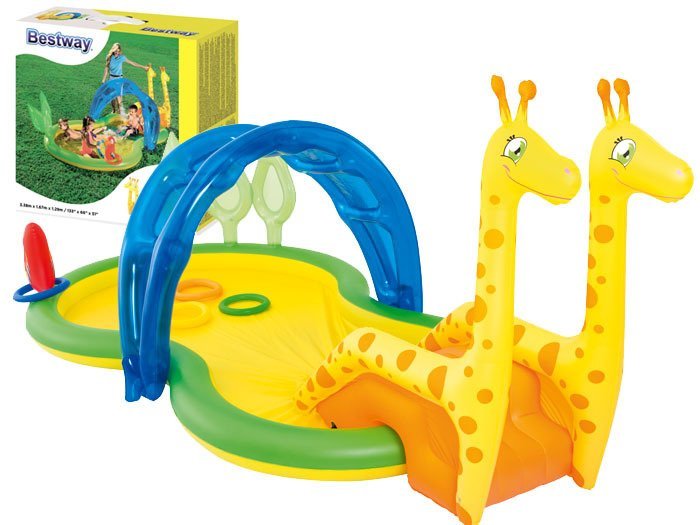 Надувний ігровий центр ZOO Жирафи Басейн Bestway 53060 - Великий водний майданчик розміром 338 x 167 x 129 см з барвистими аксесуарами для ігор подарує масу творчого задоволення.