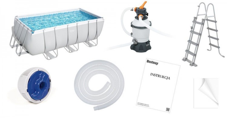 Басейн обладнаний зручною і безпечною драбиною, яка дозволяє легко і швидко засунути сходинки, коли басейн не використовується. Таким чином, діти не зможуть увійти в басейн без нагляду дорослих. У такий басейн поміщається 8 124 літри води, тому ви можете без проблем пірнати. Для швидкого зливу є спеціальні клапани. Пісочний насос, який фільтрує воду, забезпечує чистоту води, щоб ви могли якомога довше насолоджуватися літніми купаннями в чистій воді.