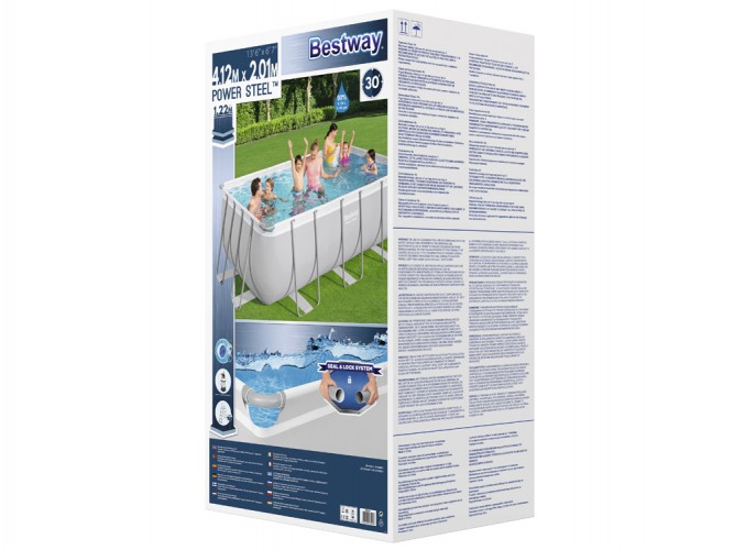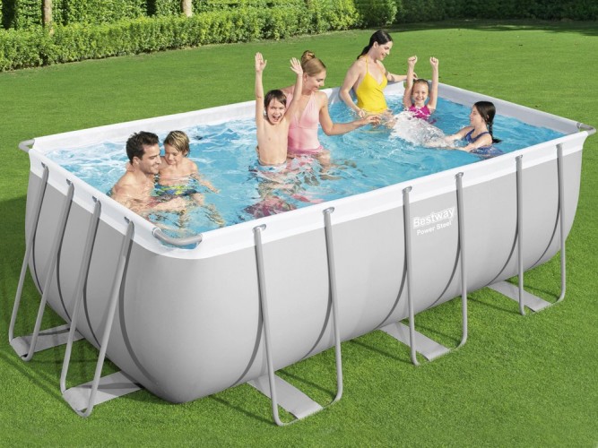 Каркасний басейн Bestway 412x201x122cm 10w1 56457 - забезпечить комфортну прохолоду в спекотні дні. Розмір і глибина басейну дозволяють і дітям, і дорослим відчувати себе в ньому дуже комфортно. Сенсаційний прямокутний басейн з вражаючими розмірами дозволить всій родині охолодитися в спекотний день.Стійка басейну виготовлена з металевої конструкції, стійкої до дощу і мінливих погодних умов. Він покритий зсередини тришаровим матеріалом Tritech.