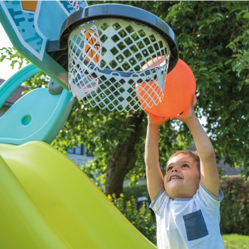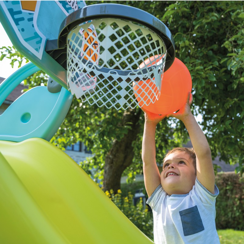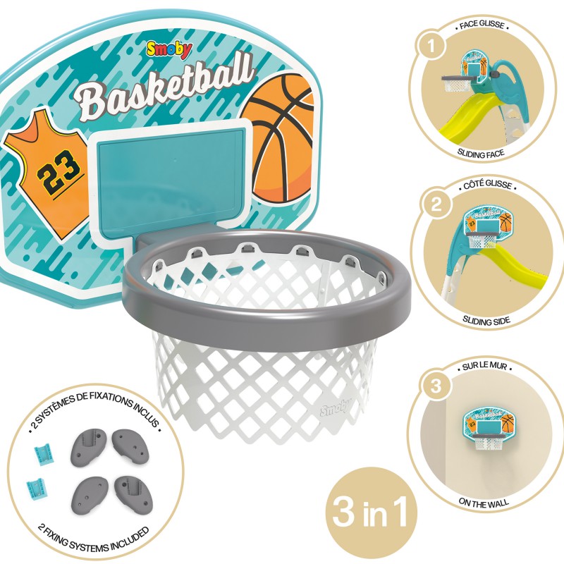 Дитячячий баскетбольний щит з кільцем Smoby - це спортивна іграшка для дітей старше 3 років. Закидання м'яча в кошик приносить багато задоволення і є чудовим тренуванням. Кошик можна прикріпити до гірки Megagliss (820200), гірки Smoby XL (820302). Ви можете розмістити його збоку або в кінці гірки, що зробить розваги більш різноманітними та цікавими. Якщо у вас немає гірки Smoby, не біда! Ви також можете повісити кошик на стіну. У комплекті ви отримаєте кріпильні деталі, необхідні для кріплення бортика.