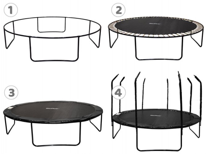 - трубки сітки кріпляться до ніжок батута міцними шурупами