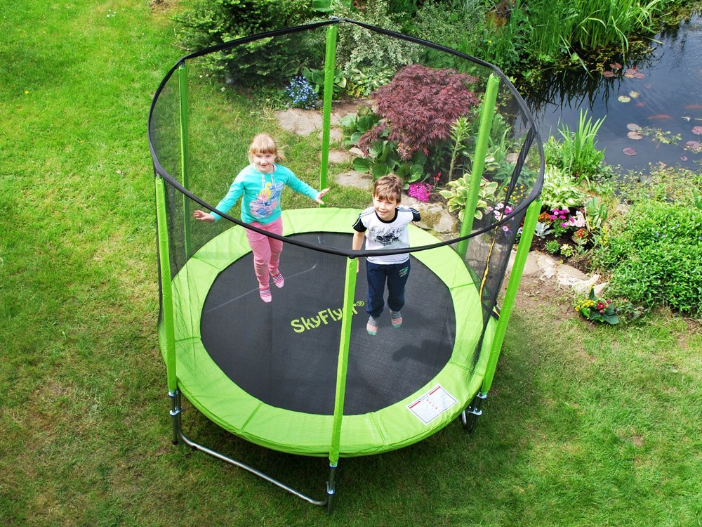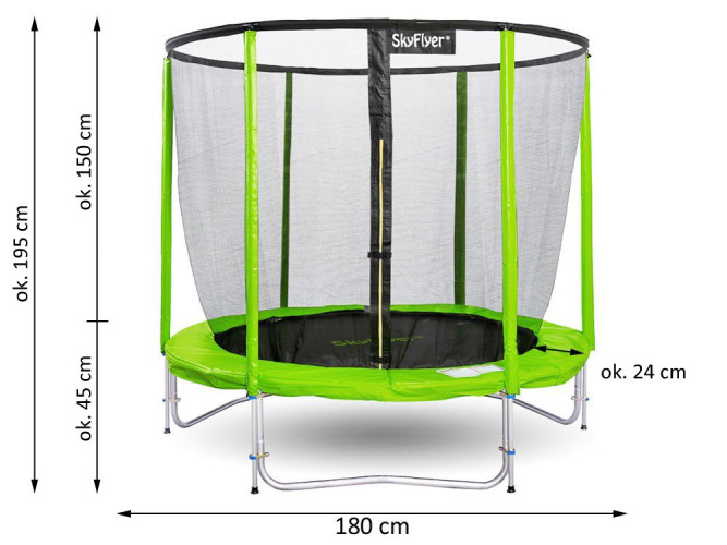 Батут садовий SKYFLYER 2в1 SKYFLYER RING 180см 6FT TR0027 - чудова розвага для всієї сім'ї - він дає можливість піднятися з місця, безтурботно пострибати і подуріти.Заняття на цьому обладнанні відмінно підходять для здоров'я і фізичної форми. Під час стрибків на батуті працюють усі м’язи, прискорюється лімфоток в організмі, завдяки чому швидше виводяться токсини та легше засвоюються клітинами поживні речовини, які згодом перетворюються в енергію. Дослідження довели, що стрибки на батуті на 68% ефективніші за біг! Батут чудово підходить для дітей, а також для їхніх батьків.Окрім задоволення та розваги, це ще й чудовий вид фізичної активності. Заняття на батуті розвивають м'язи всього тіла і можуть легко замінити аеробні навантаження. Вони благотворно впливають на м'язи литок, черевного преса і рук, роблять тіло більш гнучким. Крім того, вони покращують поставу, координацію рухів і рівновагу. Вони додають незрівнянної енергії (підвищується рівень дофаміну та ендорфінів), покращують роботу серцевого м’яза, покращують кровообіг і благотворно впливають на хребет.