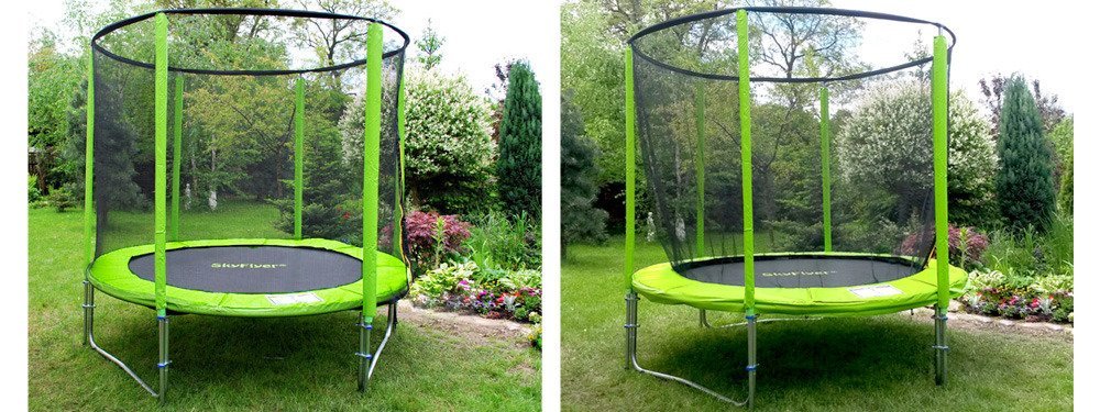 Захисна сітка може бути встановлена двома способами. Завдяки цьому ми отримуємо батут з внутрішньою сіткою (для маленьких дітей) і зовнішньою сіткою для дітей старшого віку.