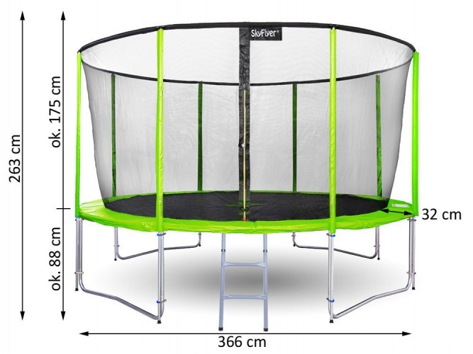 Батут садовий SKYFLYER RING 2в1 366см 12FT TR0030 - чудова розвага для всієї сім'ї - він дає можливість піднятися з місця, безтурботно пострибати і подуркувати. Ігри на батуті відмінно підходять для підтримки здоров'я і фізичної форми. Найновіша і найкраща модель батута SKY FLYER RING 2 в 1.