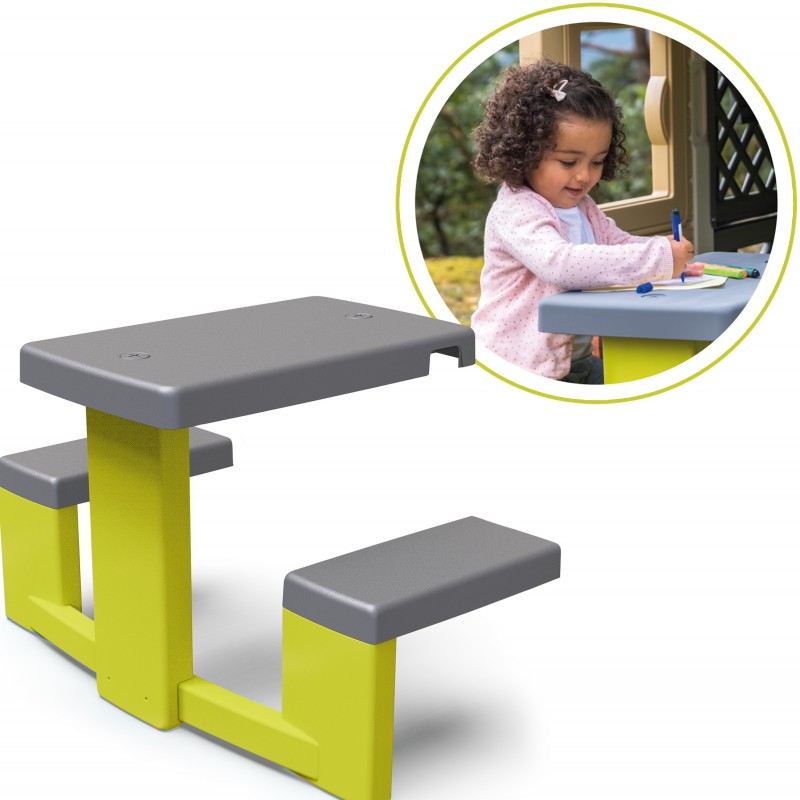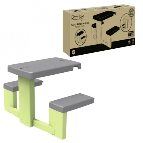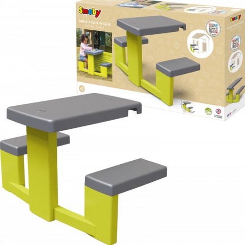 Стіл для пікніка "Садовий будиночок" - ідеальне доповнення до садового будиночка Smoby, що додає простору та реалістичності вашому саду. Стіл з двома лавками дозволяє дітям насолоджуватися трапезою зі своїми друзями. Діти також можуть гратися, готуючи та подаючи їжу, імітуючи поведінку дорослих. Іграшка стійка до сонячних променів, що гарантує її довговічність і стійкість кольору. Лавка має привабливі кольори, які пасують до багатьох будиночків Smoby.