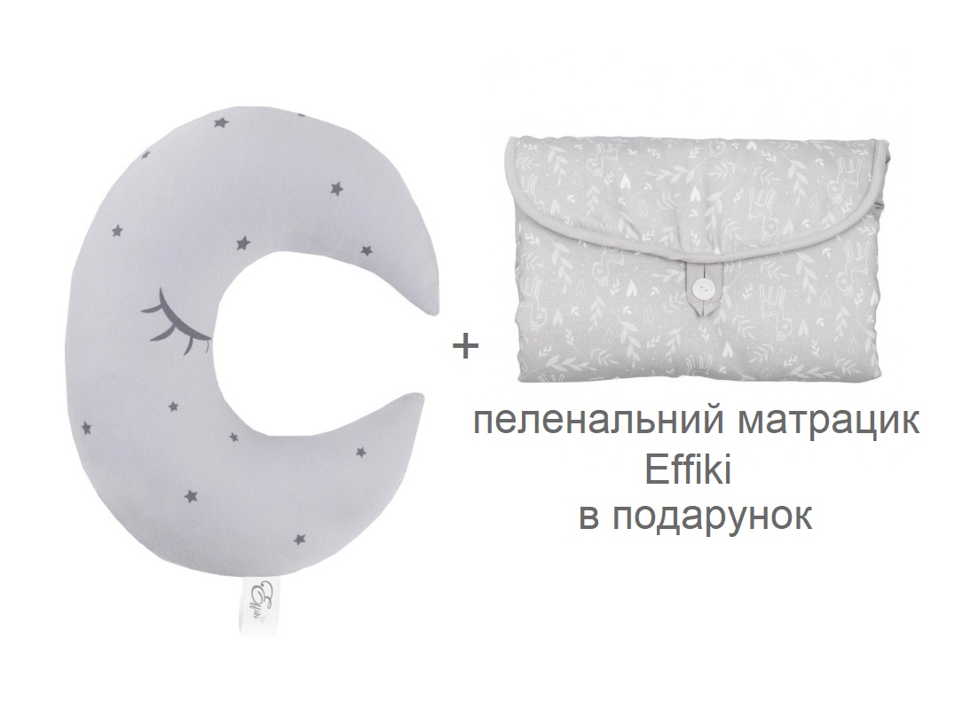 Подушка-підголовник Effikі 40х35 (Еффік) - маленька подушка з унікальним візерунком, ідеальна з перших хвилин життя. Вона незамінна при подорожі, яка служить стабілізатором для голови дитини, коли вона спить в автокріслі або колясці. Знімна наволочка на блискавці дозволяє легко тримати в чистоті подушку.