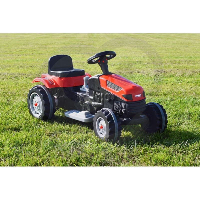 Дитячий електротрактор Woopie Power Trac 6V - ідеальний подарунок для будь-якої дитини. Трактор призначений для дітей від 3 років, він дуже простий в управлінні і дозволить з легкістю кататися на ньому навіть самим маленьким користувачам. Максимальне навантаження виробу 50 кг. Трактор має важіль переднього і заднього ходу, що неодмінно полегшить керування, а також звуковий сигнал, завдяки якому користувач зможе подати звуковий сигнал. Для безпеки трактор має автоматичне гальмування, як тільки дитина знімає ногу з педалі газу. Трактор має двигун 6 В із заднім приводом та схемою захисту від перегріву. Можливість зовнішньої зарядки (через акумулятор) за допомогою зарядного пристрою, безумовно, є великою перевагою цього продукту.