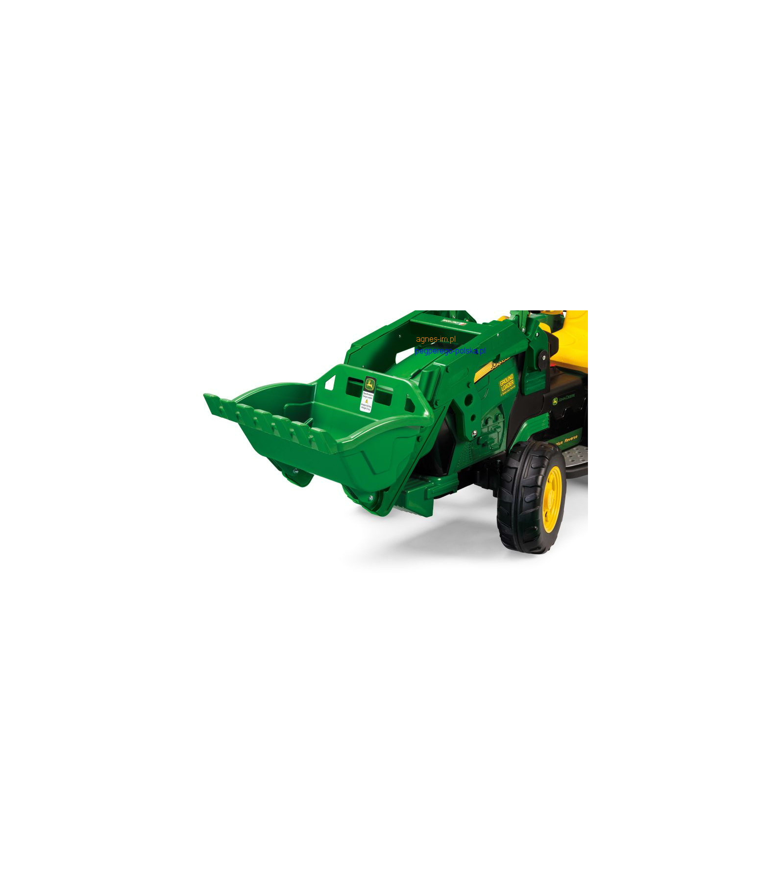 Екскаватор Peg-Perego John Deere Ground Loader + причіп - дитячий електромобіль-трактор з механічно керованим ковшем. Ківш рухається спеціальним важелем, зручно розташованим праворуч від керма. Модель оснащена сигналом на кермі та вбудованим FM-радіо. Для водія створено комфортні умови. Сидіння регулюється в 2-х положеннях у міру зростання дитини та обладнане складними підлокітниками. Хід екскаватора плавний та дозволяє долати невеликі перешкоди на дорозі. Два потужні двигуни дозволяють не тільки з легкістю перевозити важливий вантаж господарського малюка, але й допомагають розвинути пристойну швидкість. Перша передача дозволяє розігнатися до 3,5 км/год., а друга – до 7,5 км/год. Швидкість задньої передачі складає 3,4 км/год. До екскаватора можна приєднати причіп Peg-Perego John Deere Farm Wagon (придбано окремо).