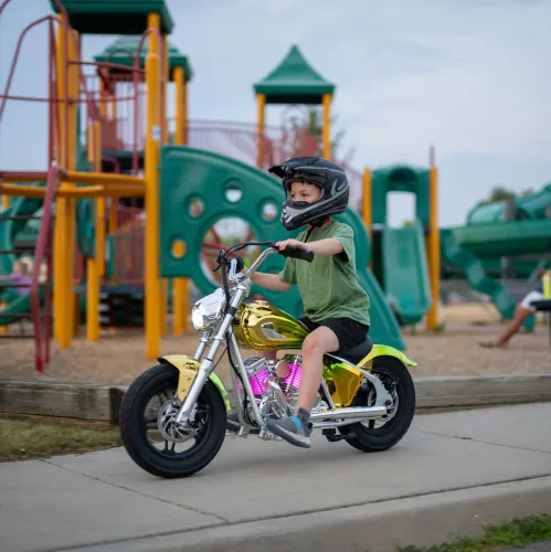 Дитячий електромотоцикл Hyper Gogo M5 - створений для підлітків, які прагнуть пригод, поєднуючи в собі елегантний стиль, потужну продуктивність та перевірену безпеку. Оснащений потужним двигуном потужністю 500 Вт, довговічним акумулятором ємністю 280,8 Вт·год та вдосконаленими дисковими гальмами, він забезпечує плавну та надійну їзду під час кожної подорожі на природі. Міцні, зносостійкі гумові шини забезпечують плавну їзду та чудове прискорення на будь-якій місцевості. У поєднанні з м’яким шкіряним сидінням для комфорту протягом усього дня, цей велосипед створений для захопливих позашляхових поїздок. Нехай пригоди почнуться! Відчуйте гострі відчуття тривалих поїздок із цим електричним мотоциклом для підлітків, який може похвалитися вражаючим запасом ходу 30,6 км на одному заряді. Він ідеально підходить для пригод на свіжому повітрі та тривалих подорожей, пропонує бездоганне поєднання ефективності, надійності та захоплення, надаючи підліткам можливість досліджувати далі, ніж будь-коли раніше.