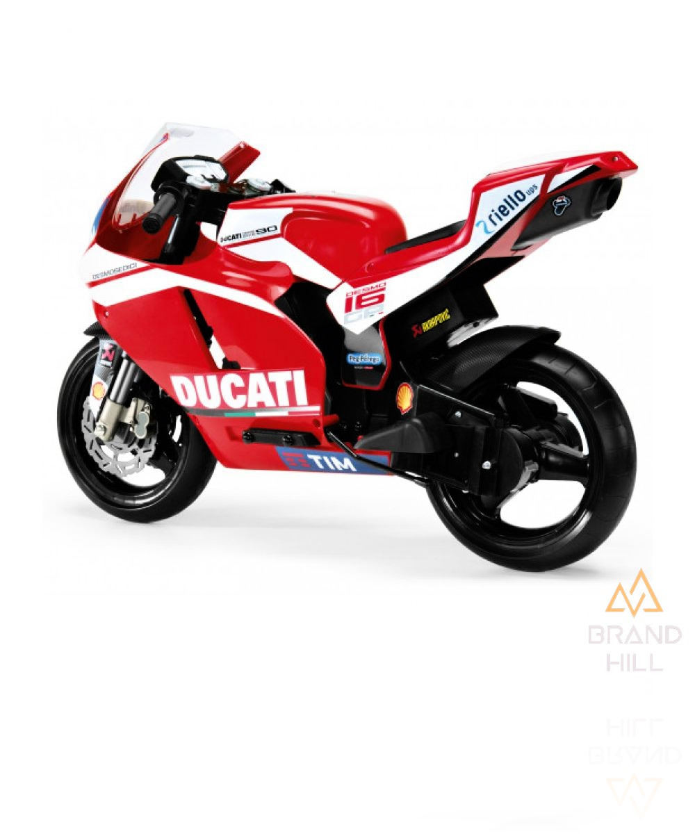 Електромотоцикл Peg-Perego DUCATI DESMISEDICI GP14 - дитячий Мотоцикл Peg-Perego DUCATI DESMISEDICI GP14 IGMC 0020. Модель ретельно деталізована, має дві швидкості, а дизайн виконаний під мотоцикл легендарного італійського мотогонщика і неодноразового. Ваша дитина щаслива. Модель ретельно деталізована, має дві швидкості, а дизайн виконаний під мотоцикл легендарного італійського мотогонщика та неодноразового чемпіона світу – Валентино Россі. Звичайно, ставши володарем справжнього гоночного байка, малюк прийде в повне захоплення! Ваша дитина у безпеці. Мотоцикл Ducati GP Rossi не небезпечніший за звичайний велосипед, має невелику вагу, анатомічну форму сидіння, металеві підставки для ніг і таку конструкцію, щоб протягом всієї поїздки маленький мотоцикліст відчував себе максимально комфортно і вільно. Два провідні колеса виготовлені із міцної, але гнучкої гуми, тому не створюють дискомфорту навіть на нерівній поверхні. А для зовсім юних і ще не дуже досвідчених водіїв модель укомплектована двома коліщатками, що знімаються. Ваша дитина розвивається. Електромотоцикл Ducati – це справжній транспортний засіб! Вже зараз ви можете привчати малюка до відповідальності та навіть знайомити з правилами безпеки на проїжджій частині в ігровій, захоплюючій формі. Крім того, деталізований дизайн мотоцикла сприятиме розвитку тактильних почуттів та дрібної моторики у вашого чада. Ваша дитина здорова. З електромобілем Per-Perego Ducati GP Rossi прогулянки на свіжому повітрі стануть улюбленим проведенням часу вашої дитини!