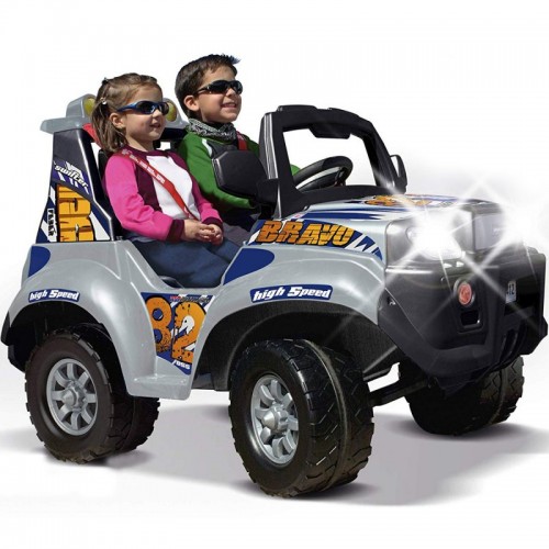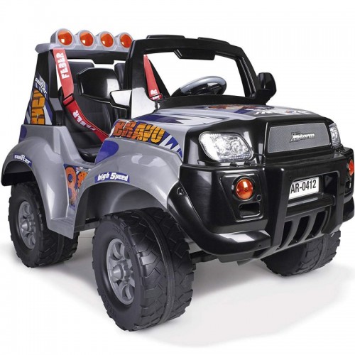 Автомобіль Feber Xstorm Bravo 12V 6466 - великий двомісний Jeep з акумулятором на 12 В для дітей. Автомобіль був обладнаний справжніми фарами. Додатковим атракціоном є радіо та інтерактивне рульове колесо зі світловим та звуковим ефектом. Газ та гальмо в одній педалі – автомобіль гальмує, коли дитина відпускає педаль газу.