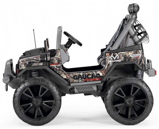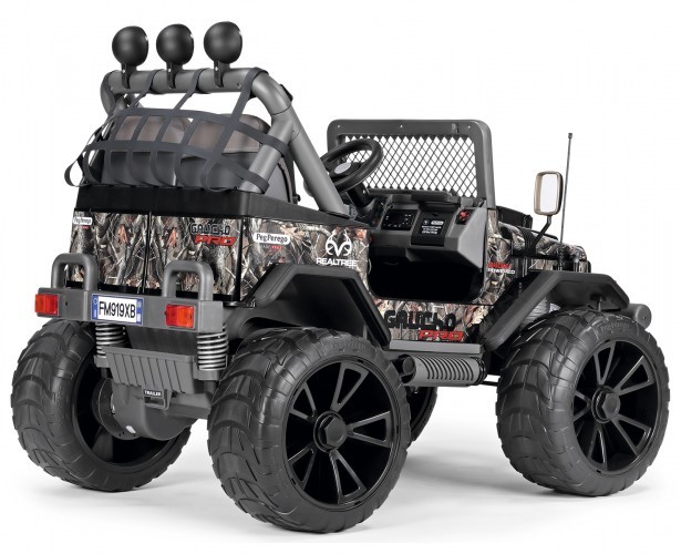 Електромобіль Peg Perego GAUCHO PRO 24V REALTREE - завдяки потужності 840 Вт транспортний засіб може їздити по будь-якій місцевості, він безпечний і стабільний.З вантажопідйомністю до 100 кг, навіть доросла людина може комфортно їздити на цьому транспортному засобі.Двигуни нового покоління та високоякісні гумові колеса роблять транспортний засіб практично нечутним під час руху.