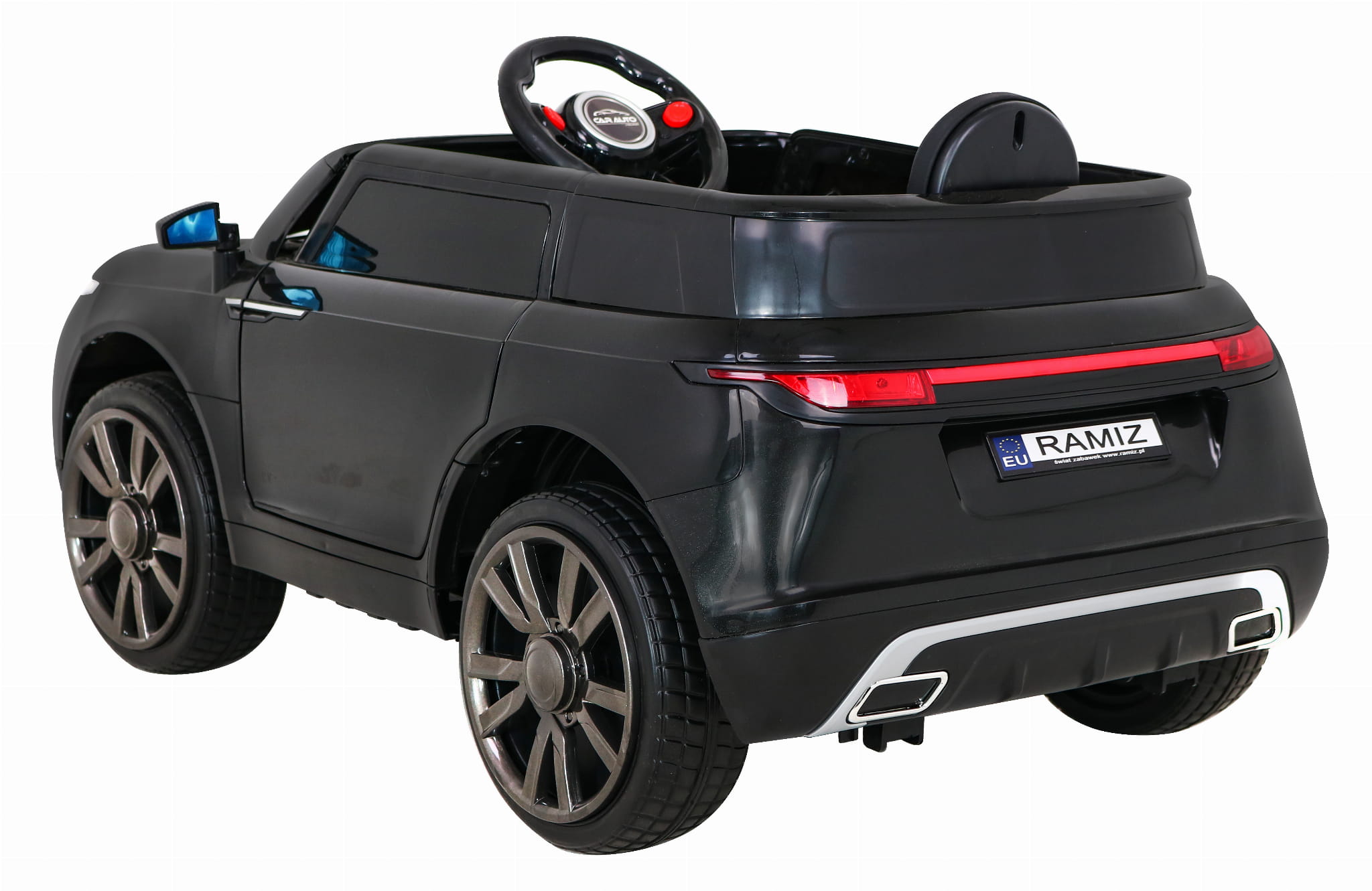 Електромобіль RAMIZ Land Rover Super-S - був розроблений з приводом від двох двигунів потужністю 25 Вт і акумулятором 12 В/7 Ач. трьох років та відповідає всім вимогам безпеки. У нього є ремені та пульт дистанційного керування, завдяки яким батько повністю контролюватиме автомобіль.