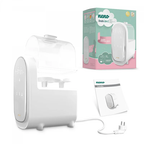 Cтерилізатор-підігрівач пляшечок NENO LINDO 6в1 - забудьте про велику та важку побутову техніку. Neno Lindo - це компактний, функціональний прилад 6 в 1 і стильний, мінімалістичний кухонний гаджет. Його універсальне використання ідеально сумісне з динамічним і повним несподіванок способом життя кожної сім'ї! Lindo підтримує до 6 режимів роботи, які включають, серед іншого, ретельну стерилізацію пляшечок, прорізувачів і сосків, а також функцію MILK з температурою 40°C, яка ідеально підходить для підігріву молока. Сенсорний дисплей з доступом до всіх програм і вбудоване світлодіодне підсвічування забезпечують швидке і зручне використання цілодобово, незалежно від потреб батьків і дитини.Шкідливі мікроорганізми становлять основну загрозу для здоров'я дитини, що розвивається. Ми знаємо про це, тому розробили Neno Lindo, щоб забезпечити ефективну стерилізацію в трьох режимах: для пластикових, силіконових і скляних виробів. Час ошпарювання, підібраний відповідно до виробу, дозволяє підтримувати чистоту, безпеку та гігієну на найвищому рівні.Достатньо лише на мить відволіктися, і розігріта їжа стає холодною та несмачною. Вирішенням цієї незручності є функція FORMULA, за допомогою якої Neno Lindo може підтримувати температуру від 40 °C до 65 °C. Це гарантує, що теплі страви завжди будуть під рукою.Багатогодинне очікування, водяна баня... Як розморозити натуральне молоко, щоб воно стало придатним до вживання? Ви можете зробити це швидко і безпечно за допомогою Neno Lindo. Прилад не тільки забезпечить потрібну температуру і час, але і гарантію того, що продукти не втратять своїх цінних властивостей. Крім того, через 30 хвилин він активує функцію підтримки постійної температури (40°C).