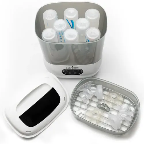Стерилізатор 2в1 Baby Brezza Dryer Advanced BRZ0069 - стерилізатор і сушарка для пляшечок. Найсучасніший спосіб стерилізації та сушіння пляшечок, частин молоковідсмоктувача та дитячих аксесуарів. Оптимальна місткість для 8 пляшечок, 2 повних комплектів деталей молоковідсмоктувача, сосків і аксесуарів будь-якої марки! Автоматично стерилізує та сушить усі марки пляшечок, деталей молоковідсмоктувачів, пустушок, прорізувачів для зубів, чашок для гній, іграшок та інших аксесуарів на 33% швидше за 1 простий крок, заощаджуючи ваш час. - Оптимальна місткість - вміщує 8 пляшечок і 2 повних комплекти деталей і аксесуарів для молоковідсмоктувача будь-якої марки - Знищує 99,9% мікроорганізмів за допомогою пари; Продукти всередині залишаються стерильними протягом 48 годин, якщо їх залишити в закритому стерилізаторі - Простий у використанні, функціональність 4-в-1: використовуйте РК-панель керування, щоб вибрати одну з 4 функцій (стерилізація та сушіння, лише стерилізація, лише сушіння або система зберігання); - Модульний - можна використовувати 4 різними способами для задоволення ваших потреб. Включає два кошики та унікальний піднос для менших аксесуарів - Нагрівальна пластина з нержавіючої сталі стійка до корозії; Містить змінний фільтр HEPA, який сушить повітрям, яке на 95% не містить мікробів.