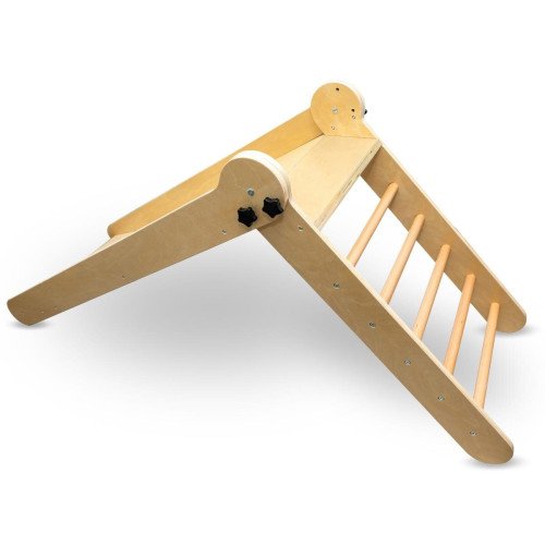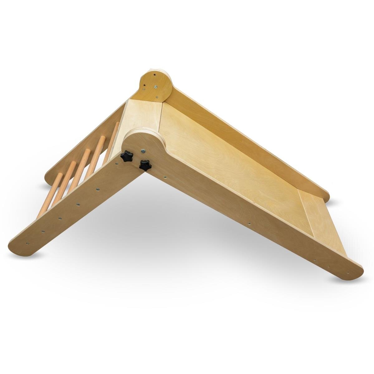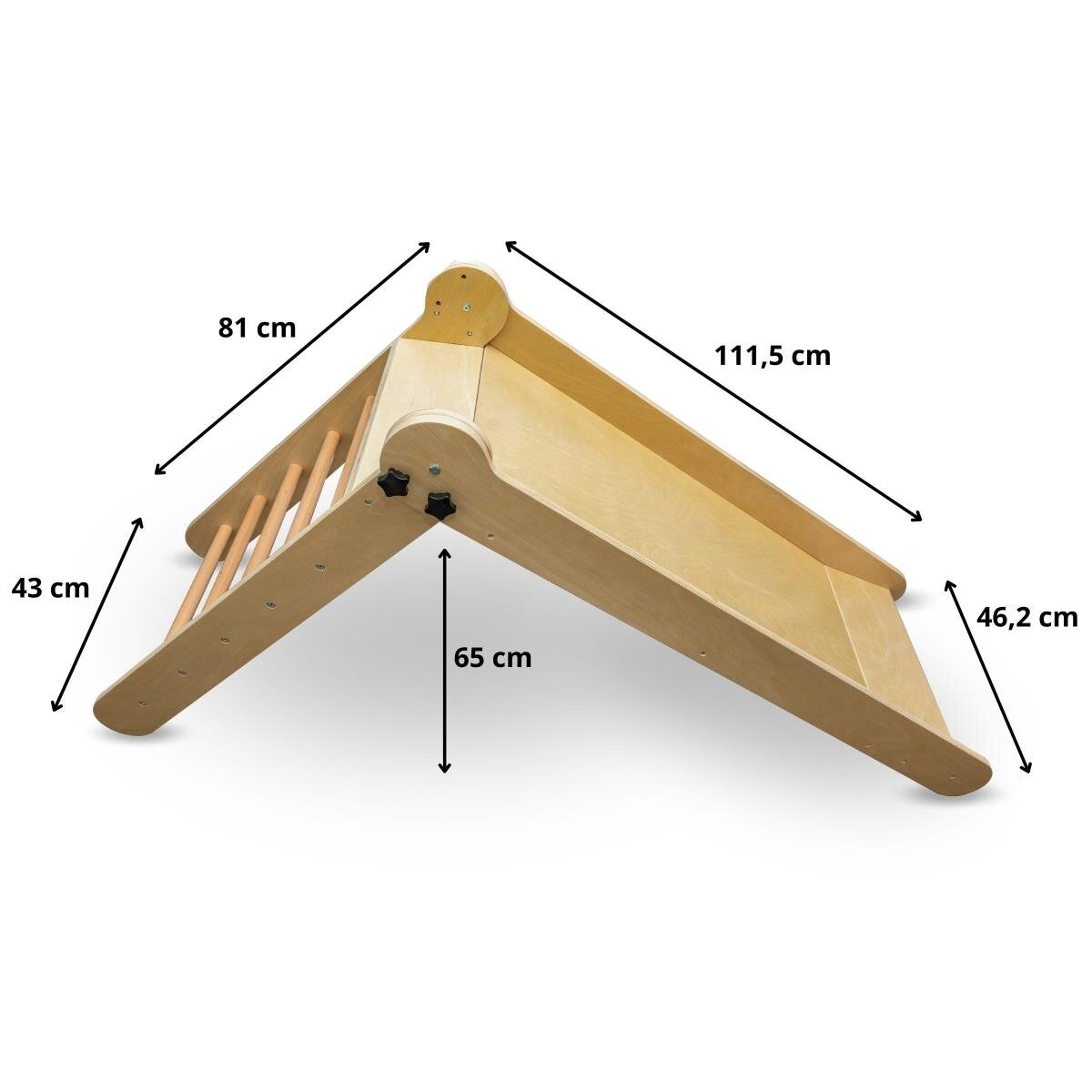 Дерев'яна складна гірка Mamabrum - забезпечте дитині активні розваги та створіть простір, де вона зможе виплеснути надлишок енергії. Дерев'яна гірка перетворить кімнату вашої дитини на ігровий майданчик, сповнений активності!Дерев'яна гірка зі сходами, призначена для домашнього використання, обіцяє фантастичні розваги, незалежно від погоди за вікном. Ковзання - одне з найулюбленіших занять дітей. Тому ви можете бути впевнені, що такий подарунок сподобається вашому малюку. Дерев'яна гірка сприяє розвитку впевненості в собі та незалежності. Проводячи на ній час, ваш малюк зміцнить м'язи, потренує координацію та відчуття рівноваги.Дерев'яна гірка для дітей має високі бічні стінки, що сприяє безпеці малюка під час гри. Стійкі сходинки забезпечують легке сходження. Коли гірка більше не потрібна, її можна швидко скласти. Тоді вона не займе багато місця. Завдяки простому дизайну вона ідеально впишеться в будь-який простір.