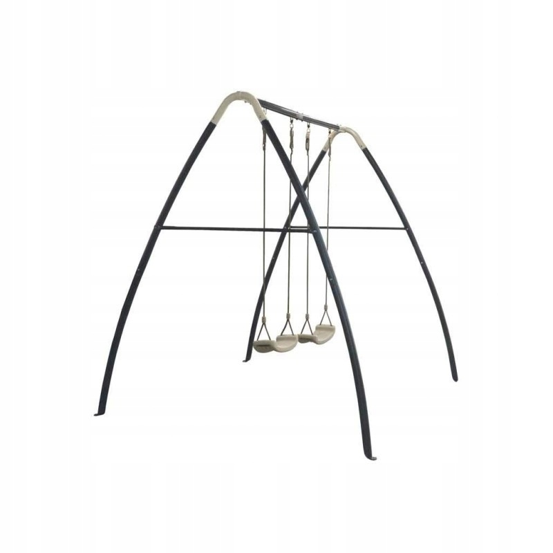 Двохмісна металева гойдалка AXI А030.242.00 - виготовлені зі сталі з порошковим покриттям та оцинковані зсередини та зовні. Для додаткової безпеки гойдалки постачаються з чотирма ґрунтовими анкерами для бетонування в землю. Сидіння гойдалок виготовлені з поліпропілену (PP) та дуже легко миються, тому ви можете гойдатися одразу після невеликого дощу. Гойдалки ростуть разом з вашою дитиною завдяки регульованим тросам, що забезпечує тривалий термін служби. Розміри гойдалок приблизно (ДхШхВ) 210 x 210 x 217 см, максимальна вага користувача - 50 кг на одне сидіння гойдалок.