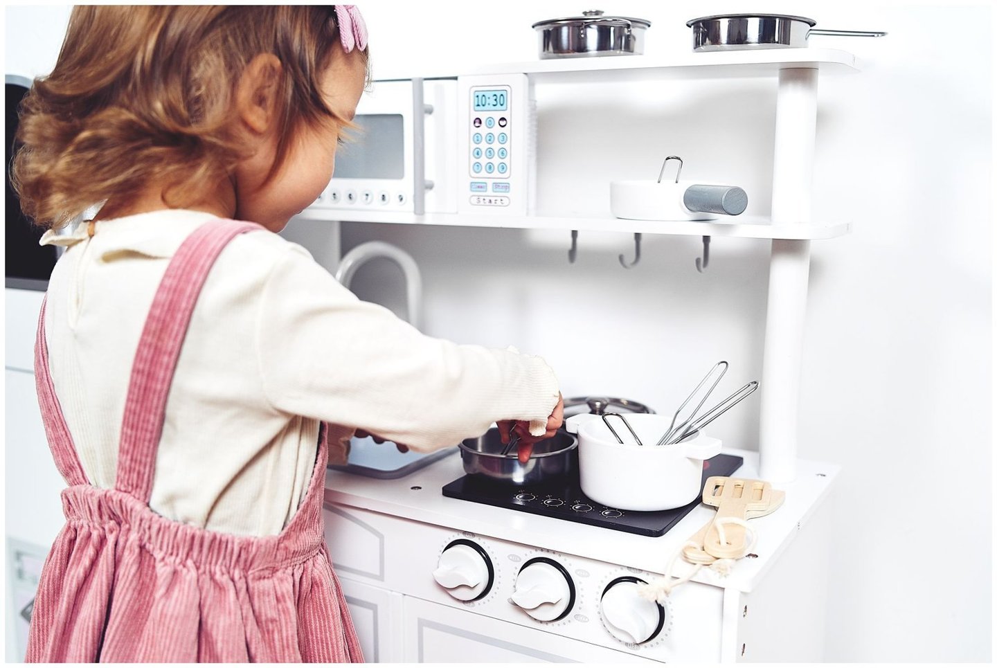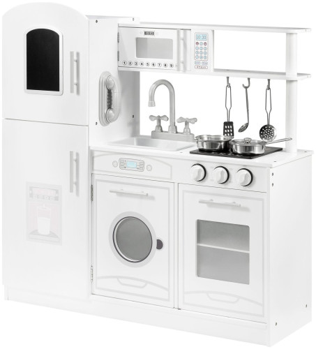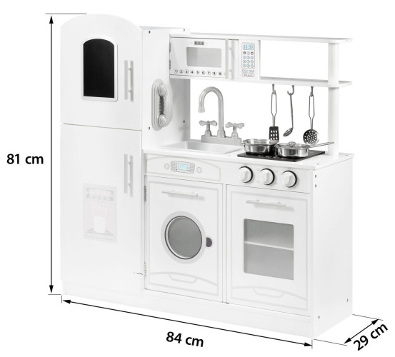 Дерев'яна кухня Mamabrum PLK536 N - ваша дитина любить допомагати вам на кухні? З самого початку їй подобається бути активною під час приготування їжі? Кухня з пікантним смаком стане його мрією, що здійснилася! Подаруйте йому прекрасну білу кухню XXL, яка оманливо схожа на справжню. Численні зручності та деталі допоможуть йому ще більше зануритися в процес.Матеріал: безпечна дерев'яна плита МДФ, пластикові елементи 100% безпечний. Кожна деталь виготовлена вручну, з великою увагою до деталей і найвищою якістю обробки, а також з турботою про повну відсутність гострих країв, які мають вирішальне значення для безпеки вашої дитини.Наші іграшки повинні не тільки приносити радість малюкам, але, перш за все, вони повинні бути безпечними, саме тому ми стежимо за тим, щоб фарби, які використовуються у виробництві наших іграшок, були нетоксичними і відповідали всім стандартам безпеки. Виріб відповідає вимогам Директиви CE і відповідає стандарту EN 71, який визначає вимоги до безпеки іграшок.Задля безпеки малюків, іграшка не має гострих кутів!