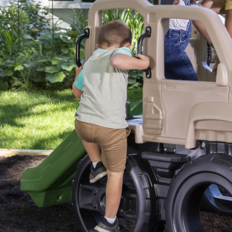 Дитячий майданчик з гіркою STEP2 Safari Truck 4136KR - це міцна платформа для лазіння з гіркою у формі позашляховика. Реалістичний вигляд транспортного засобу, великі колеса та відкритий дах заохочують дитину гратися в саду . Маленькі шукачі пригод можуть піднятися величезними колесами , схожими на сходи, на найвищу платформу, де є біноклі , через які вони можуть спостерігати за дикою природою. Дитячий майданчик виготовлений з високоякісного безпечного пластику, міцного та довговічного.