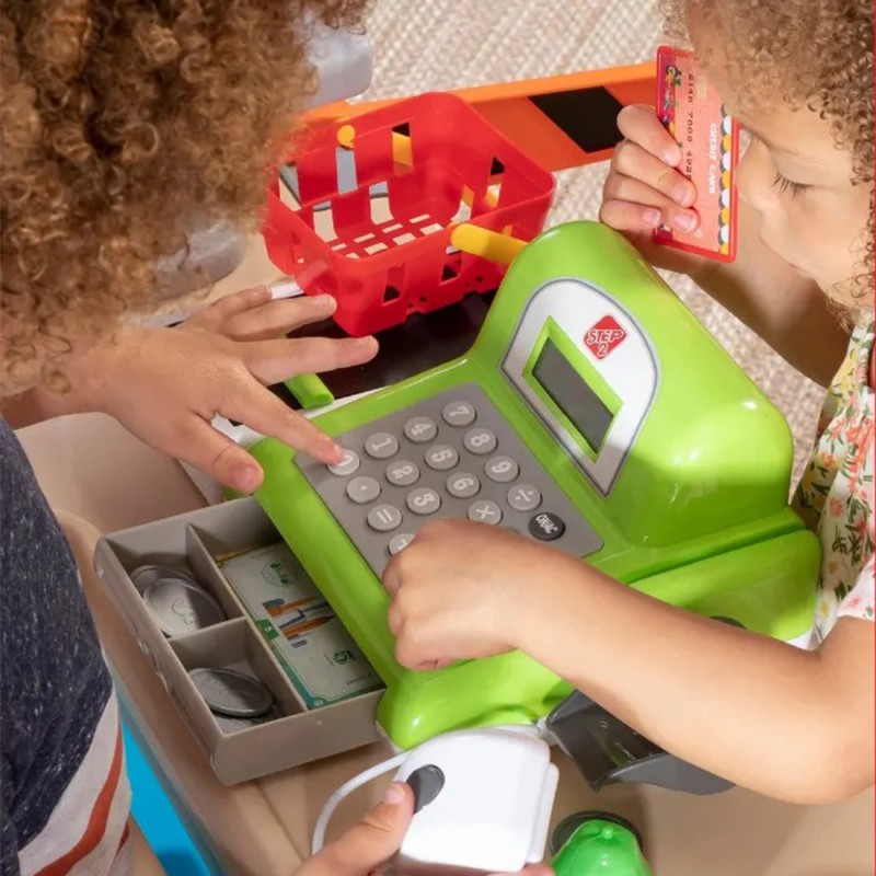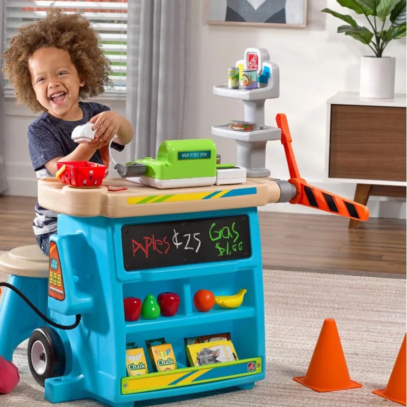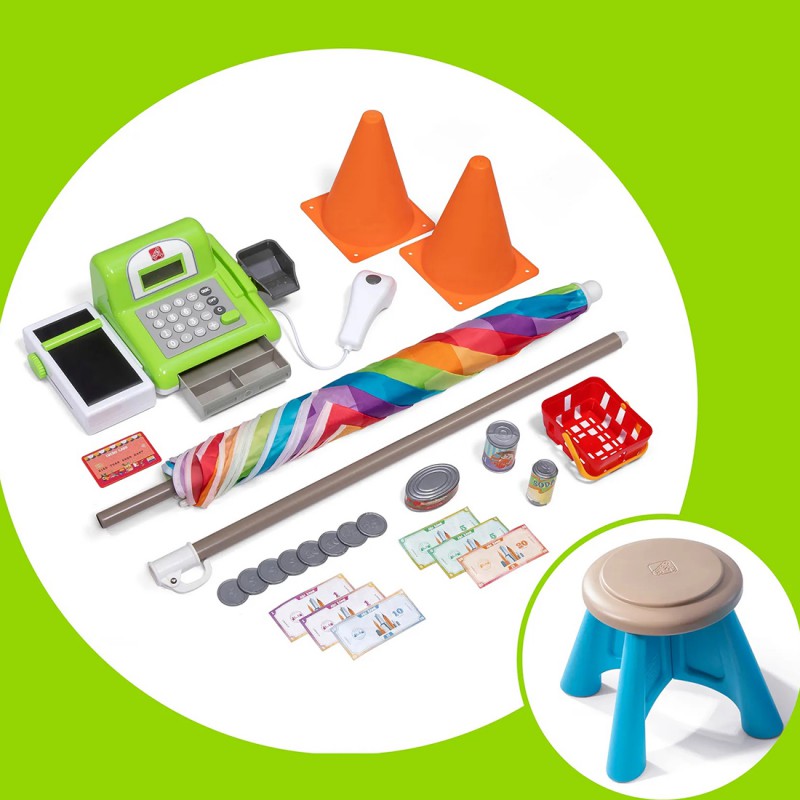 Дитячий прилавок STEP2 413599 - граючи в маленького підприємця від відомої компанії STEP2, ваша дитина відчує себе дорослою. Приготуй свій кіоск, покупці вже чекають! Він обладнаний бензоколонкою, кабінкою для оплати , конусами, дошкою і працюючим касовим апаратом. Діти можуть по черзі грати ролі касира та покупця. Наш малюк може гратися з машинками, заправляючи їх пальним або сплачуючи за проїзд. На спеціальній дошці можна написати пропозицію дня, ціну на пальне або назву свого ринку. Торговий прилавок має парасольку, щоб захистити дітей від сонця або дощу, а завдяки коліщаткам, що входять до комплекту, його можна легко переміщати на наступне місце!