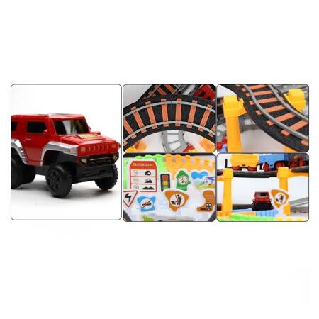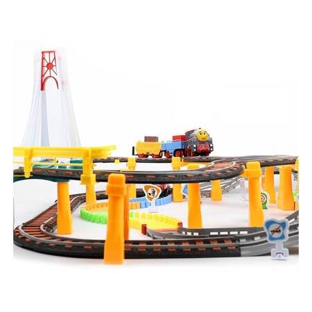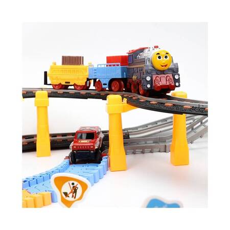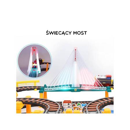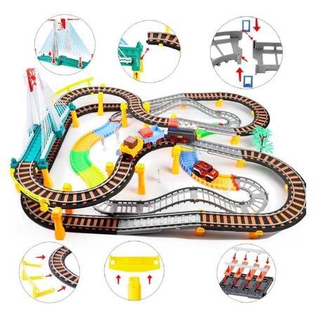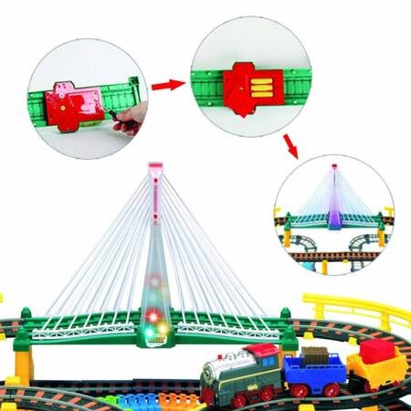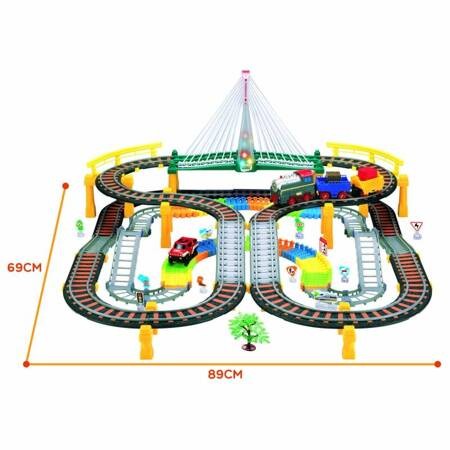 Електрична залізна дорога Woopie 2в1 Race Track Train Viaduct Auto XXL - створений з думкою про маленьких любителів автоперегонів! Додатковим бонусом набору є потяг та естакада, що входять до комплекту. Транспортні засоби рухаються окремими коліями, що робить цей сенсаційний набір іграшкою 2-в-1. Локомотив має 2 вагончики, в яких маленький залізничник може розмістити свій вантаж. Колії незалежні - можна керувати потягом і вагончиком одночасно. Естакада, що входить до набору, світиться, коли проїжджає потяг. Яскраві кольори та якість виготовлення іграшки створюють неповторну атмосферу та додають іграшці автентичного вигляду. До набору також входять дерева та інші елементи, які урізноманітнюють оточення колії. Набір містить до 192 елементів, включаючи локомотив, вагон та розвідний міст. Додатковою перевагою набору є реалістичний звук, який видає потяг!!! Іграшка повністю безпечна для наших наймолодших. Під час гри малюк розвиває свої ручні навички та уяву.
