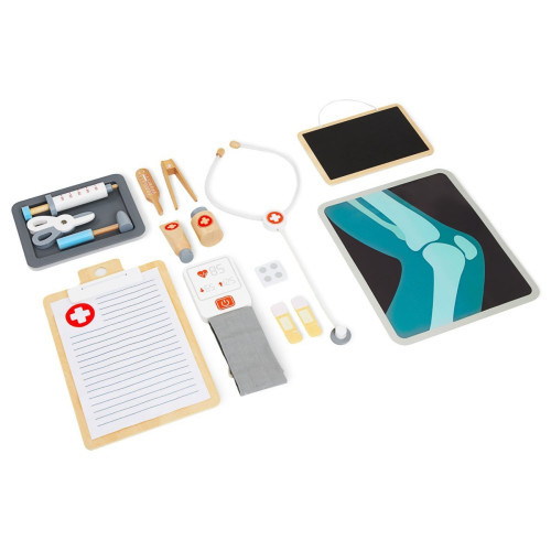 Ігровий набір Mamabrum Прийом у лікаря MAM123 MEDICAL SET - іграшка для кабінету лікаря забезпечить вашій дитині години фантастичної гри , розвиваючи її уяву та моторику. Велика кількість реалістичних аксесуарів , таких як рухомий шприц, стетоскоп і тонометр, допомагають дітям краще зрозуміти світ медицини та візити до лікаря. Крім того, дерев'яний кабінет має функціональне вікно, яке виконує дві функції: стійку реєстрації та місце для представлення результатів аналізів. Медичні контейнери, полиці, містка шафа та дерев'яні вішалки допомагають підтримувати порядок і полегшують зберігання . Цей дерев'яний набір створює реалістичну атмосферу кабінету лікаря .