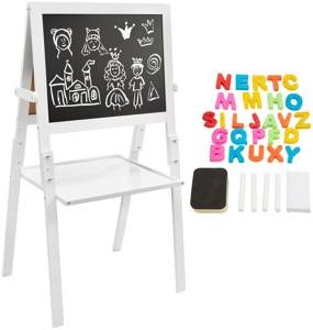 Мольберт на магніт і крейду Mamabrum-Хрестики-нуліки, каламбури або, можливо, просто шкільні забави. Це буде залежати від вашої дитини, як вона користується дошкою. Завдяки двом дошкам з нею можуть грати одночасно двоє дітей! Ніжний білий колір не закриє кімнату, в якій стоятиме класна дошка. Він чудово впишеться до дитячої кімнати.
