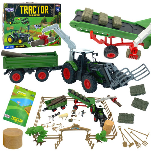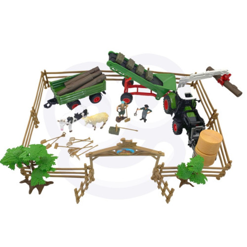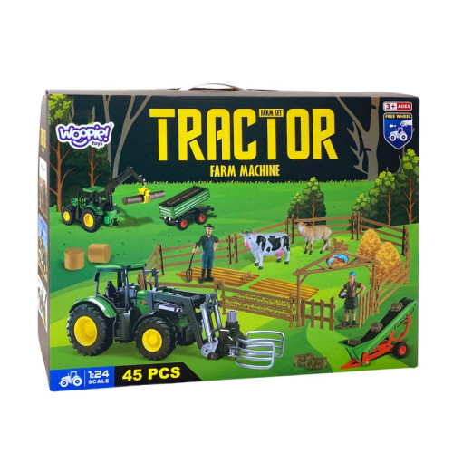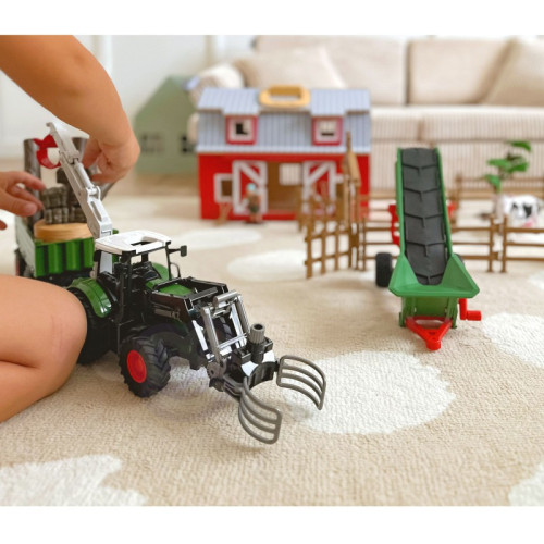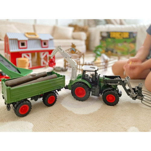 Набір сільськогосподарської техніки Міні Ферма WOOPIE Трактор, Садиба 506500 - справжня насолода для кожного маленького шанувальника сільськогосподарської техніки. Цей подарунок подарує вашій малечі багато годин творчих розваг. Класичний вигляд барвистого набору з самоскидом неодмінно зацікавить Вашу дитину і одразу зацікавить іграшкою. Машина має кермо, яким можна керувати. Це ідеальне поєднання чудового часу та навчання, а також можливість весело провести час з батьками, однолітками чи братами і сестрами. Завдяки тому, що трактор з причепом ідеально відтворений, він принесе ще більше задоволення кожній дитині, отримавши його. Іграшка точно відображає справжню сільськогосподарську машину. Завдяки спеціальному керму ваш малюк може керувати трактором, як справжнім транспортним засобом. Коли він повертає кермо вліво або вправо, колеса іграшкової сільгоспмашини теж будуть повертатися.