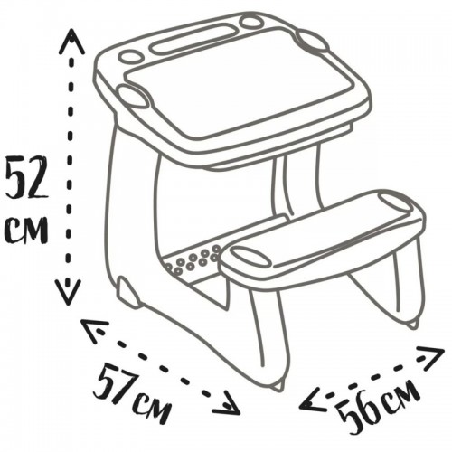 Парта з дошкою для малювання Smoby - маленькі художники можуть зручно сидіти на оптимально нахиленій парті від Smoby, і, крім того, все їхнє приладдя знаходиться під рукою! У висувній шухляді можна зберігати малюнки, фломастери, кольорові олівці та інші гаджети. Дошка для малювання має поверхню, що стирається та очищується за допомогою ганчірочки, яка входить до комплекту. Це дозволяє дітям створювати все більше і більше малюнків!