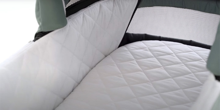 - Стьобана внутрішня частина люльки з матрацом в тому ж стилі надає відчуття елегантності та чистоти. Матрац люльки підходить для малюків з точки зору міцності і безпеки використовуваних матеріалів. Завдяки цьому Bebetto Yoddi дозволить вашому малюку спокійно відпочивати, гарантуючи, що ніщо не зіпсує його прогулянку.