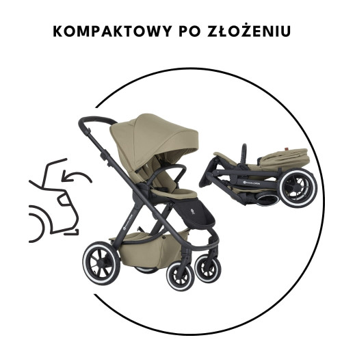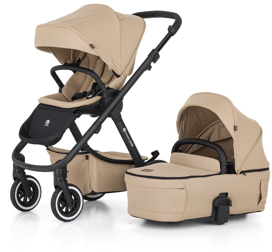 - Простий і зручний механізм складання та фіксатор роблять коляску ICON 2 в 1 практичним вибором для активних сімей. У складеному вигляді вона займає мало місця, і транспортування її в автомобілі не становить жодних проблем.
