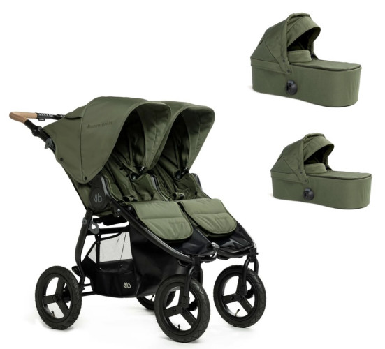 Коляска 2в1 для двійні Bumbleride Indie Twin  - залишайтеся активними навіть з двома дітьми. З самого народження і до кінця використання коляски ви можете проводити активний час зі своїми дітьми. Возити їх на відпочинок і прогулянки, навіть по найскладніших місцевостях. У вас двійня? Встановіть дві люльки, два автокрісла або просто перетворіть коляску в коляску для новонароджених без будь-яких додаткових аксесуарів. Зручні люльки швидко встановлюються на шасі, мають непромокальне покриття зовні і м'яку внутрішню оббивку з екологічним бамбуковим волокном у складі. Від поганої погоди ваших двійнят захистять безшумно регульовані капюшони і накидки для ніжок. Люльки комплектуються ортопедичними матрациками з "дихаючими" властивостями. Незалежні прогулянкові сидіння налаштовуються індивідуально під кожну дитину завдяки наявності безлічі регульованих елементів. Можна налаштувати нахил спинок сидінь, відрегулювати сонцезахисні козирки і нахил підніжки. Всі налаштування і регулювання відбуваються за лічені секунди.Ширина шасі Indie Twin становить лише 75 см, що дає змогу безперешкодно проїхати в більшість дверних прорізів. Міцна база коляски і великі надувні колеса підходять для заміських прогулянок по бездоріжжю. Модульна конструкція дає можливість за допомогою адаптерів встановити на коляску автокрісло групи 0+ (купуються окремо). Це дає змогу перетворити коляску на універсальну систему для подорожей 3в1. Для зменшення впливу ультрафіолетового випромінювання в козирку використовується новий внутрішній матеріал із фактором захисту SPF 45.Екологічно чисте виробництво.Ми провели більше десяти років, переробляючи пластикові пляшки на наші тканини (мільйони пляшок). Тканина Bumbleride на 100% складається з переробленого ПЕТ (rPET) і не містить шкідливих хімічних речовин: OEKO-TEX Standard 100, клас I сертифікований, не містить антипіренів, свинцю, фталатів, бісфенолу, пінополіуретану, ПВХ, формальдегіду, хлору та багатьох інших шкідливих речовин, до яких ви не хочете підпускати свою дитину.