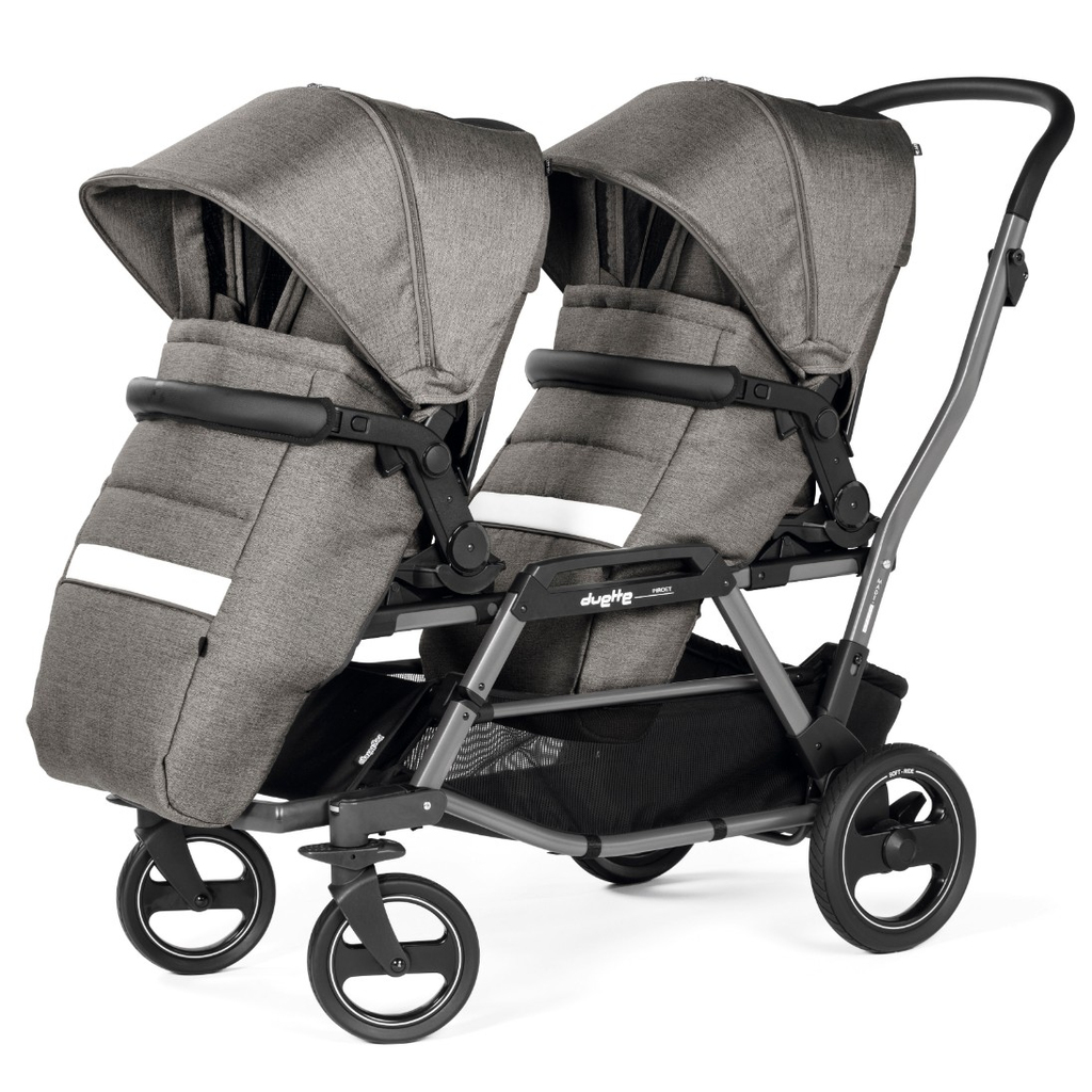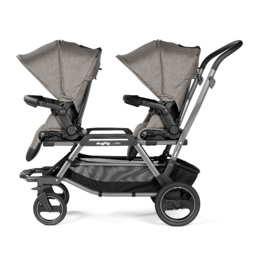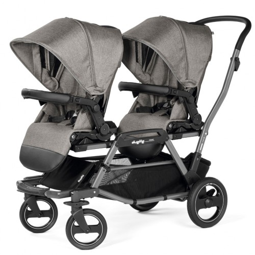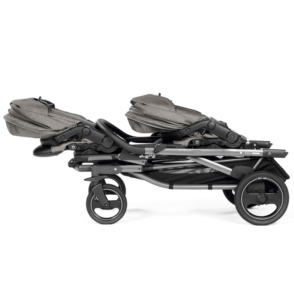 Прогулянкова коляска для двійні Peg Perego DUETTE PIROET - Просторі сидіння з відкидними спинками, бамперами та регульованими опорами для ніг дозволяють налаштувати коляску під індивідуальні потреби кожного пасажира. Завдяки реверсивному встановленню блоків, кожній дитині достатньо простору, і вони не заважають один одному. З універсальним візком для двійні Duette Piroet можливо все. Встановлюйте прогулянкові блоки, люльки та автокрісла у будь-якому положенні як вам зручно та насолоджуйтесь прогулянками всією родиною. Компактно складається за типом «книжка» і в складеному вигляді не забруднює оббивку.