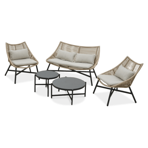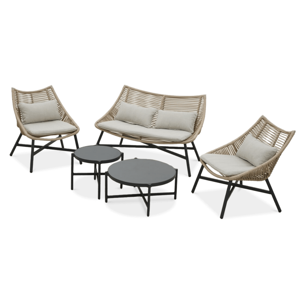 Комплект садових меблів ALMERA CAFFE - унікальний дизайн, висока якість виконання та зручні сидіння в салоні ALMERA CAFFE від Focus Garden. зробить ваш сад або терасу улюбленим місцем зустрічей. Одномісне крісло вражає не тільки своїм стильним зовнішнім виглядом, але і зручністю використання. Його компактний розмір і легка конструкція дозволяють легко адаптувати його до ваших уподобань. Диван - ідеальне місце для відпочинку вдвох. Меблі надзвичайно стійкі та міцно стоять на землі. Комфортні подушки сидінь і спинок значно підвищують комфорт відпочинку і забезпечують незабутні моменти відпочинку. Великий стіл діаметром 71 см (висота: 35 см) - ідеальне місце для літніх сніданків або вечірніх зустрічей. Виготовлений з алюмінію з порошковим покриттям і штучного ротанга, він міцний і простий у догляді. Маленький столик діаметром 51 см (висота: 43 см) є чудовим доповненням, ідеально підходить для кави або невеликих закусок. Його легка конструкція (4 кг) дозволяє легко переміщати його за потреби. Весь набір виготовлено з матеріалів найвищої якості, таких як алюміній, штучний ротанг і поліестер, що гарантує довговічність і стійкість до погодних умов. Скляна стільниця з покриттям на столах додає елегантності та робить набір надзвичайно красивим. Відкрийте для себе неперевершений комфорт і стиль із набором ALMERA CAFFE від Focus Garden. Відмінний вибір для тих, хто цінує розкішний відпочинок на природі.