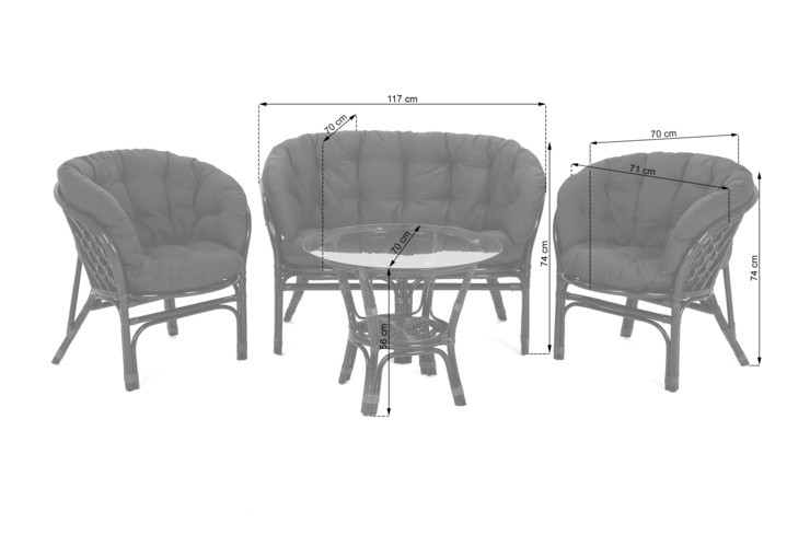 Одним із найпопулярніших продуктів у нашій широкій пропозиції є садові меблі з ротанга Bahama. Їх точно вишуканий дизайн зігріє інтер'єр будь-якої вітальні, тераси або саду. Комплект складається з дивана, двох крісел і столу. І крісла, і диван обшиті зручними подушками, покритими оббивкою з приємної на дотик суміші бавовни та поліестеру. Дуже важливу роль у всьому наборі відіграє оформлений зі смаком стіл. Його верхня частина виготовлена з міцного загартованого скла. Невелика полиця (наприклад, для ранкової газети або сумки) додатково підвищує його стійкість. Гармонійний колір ротанга з підібраними за кольором подушками додає меблям елегантний характер. Садові меблі з ротанга Bahama - високоякісний продукт, призначений для людей, які цінують зручність і комфорт.Набір Bahama є натуральним продуктом, на ньому можуть бути нерівності, зміни кольору, подряпини, вигини або невеликі тріщини.Виріб слід захищати від атмосферних опадів і вологи.